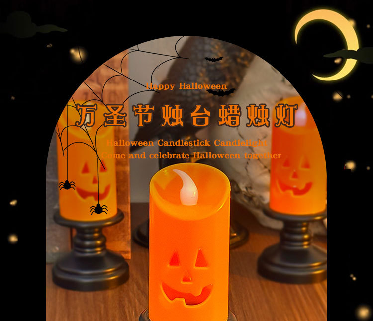 【万圣节烛台蜡烛灯!来一次神秘的聚会】万圣节南瓜灯LED电子蜡烛灯创意烛台小夜灯氛围感装饰道具小摆件。rc