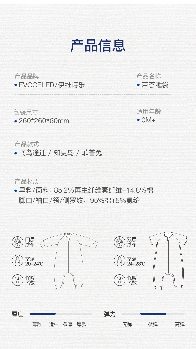 英国Evoceler伊维诗乐婴儿芦荟纱布睡袋