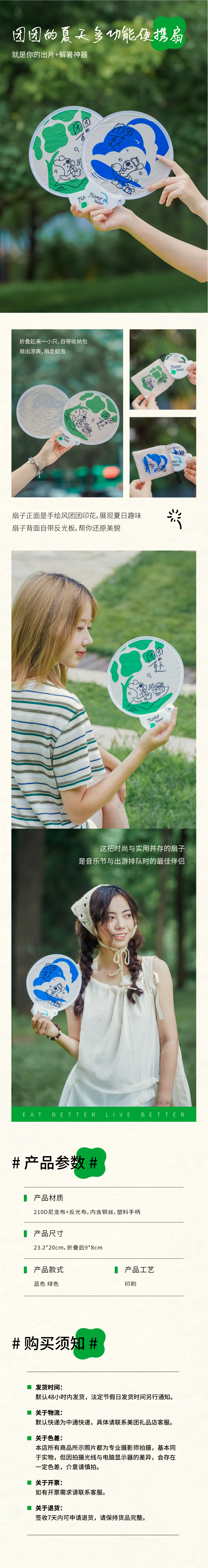 团团手绘风多功能便携扇子