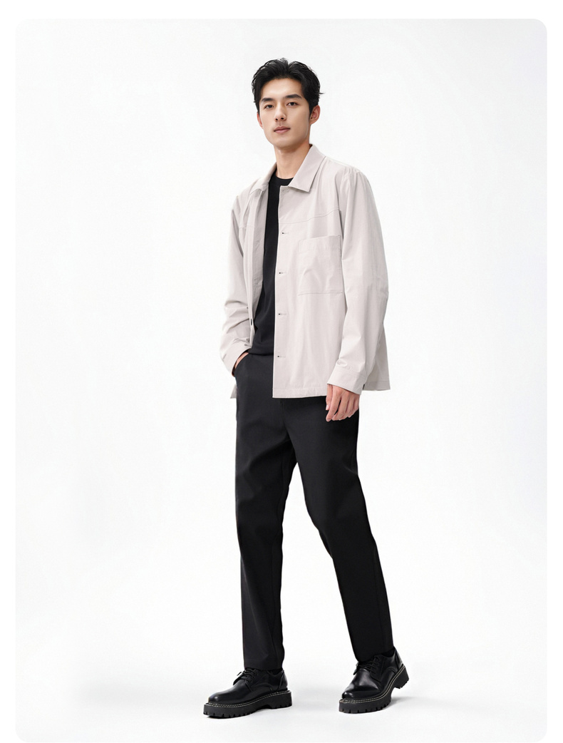 圣得西男士翻领工装夹克2025年秋季新款通勤百搭纯色休闲外套