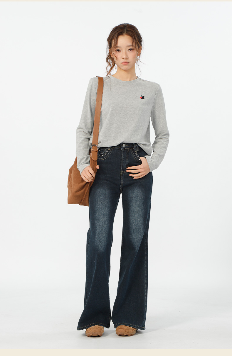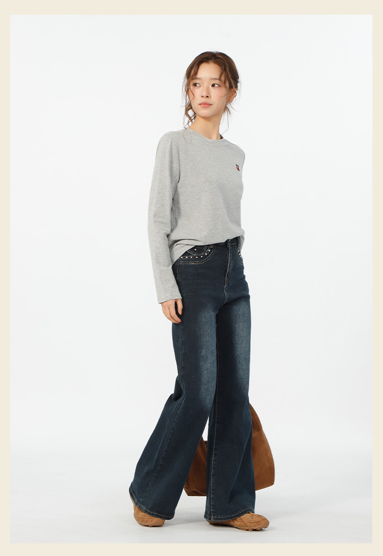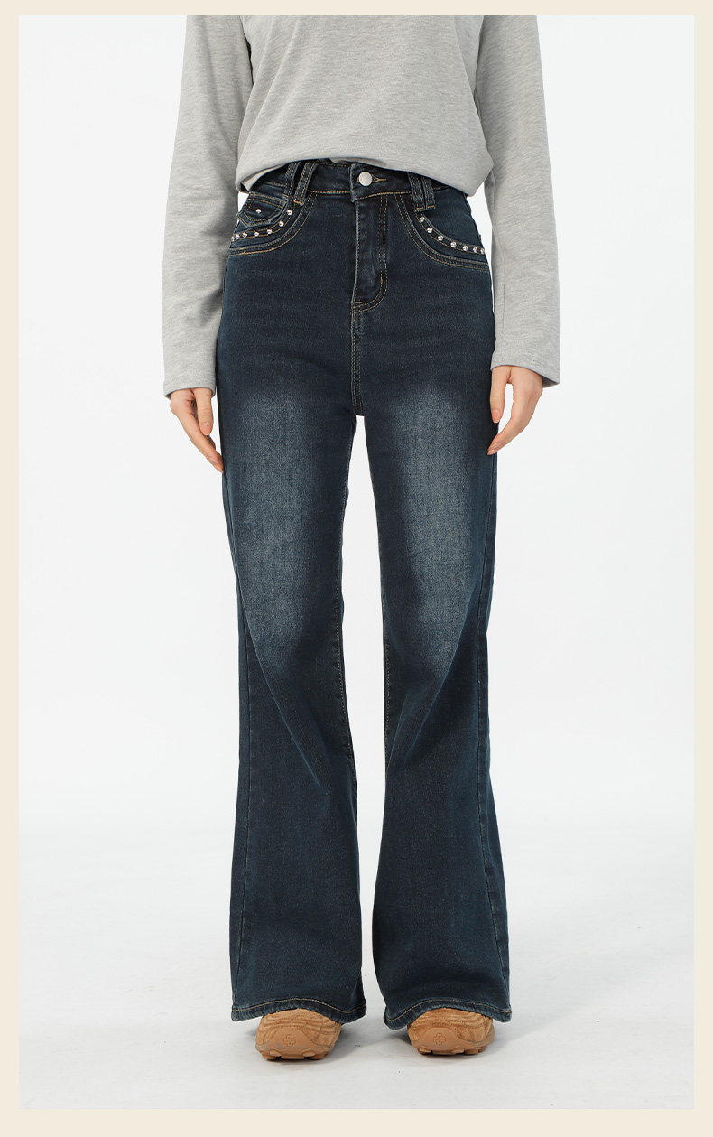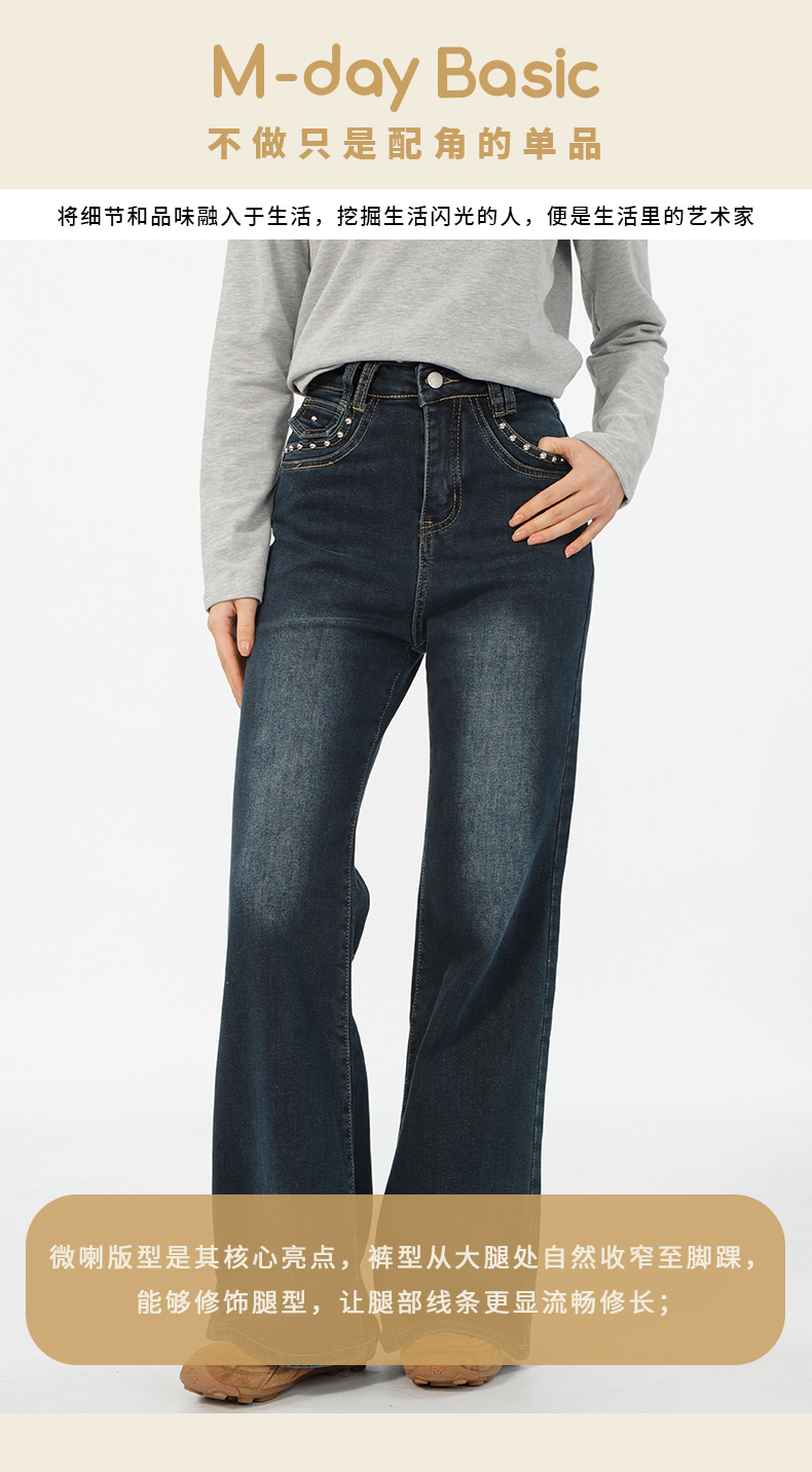 基本款口袋铆钉微喇牛仔裤-纪念日百货门店同款167546638