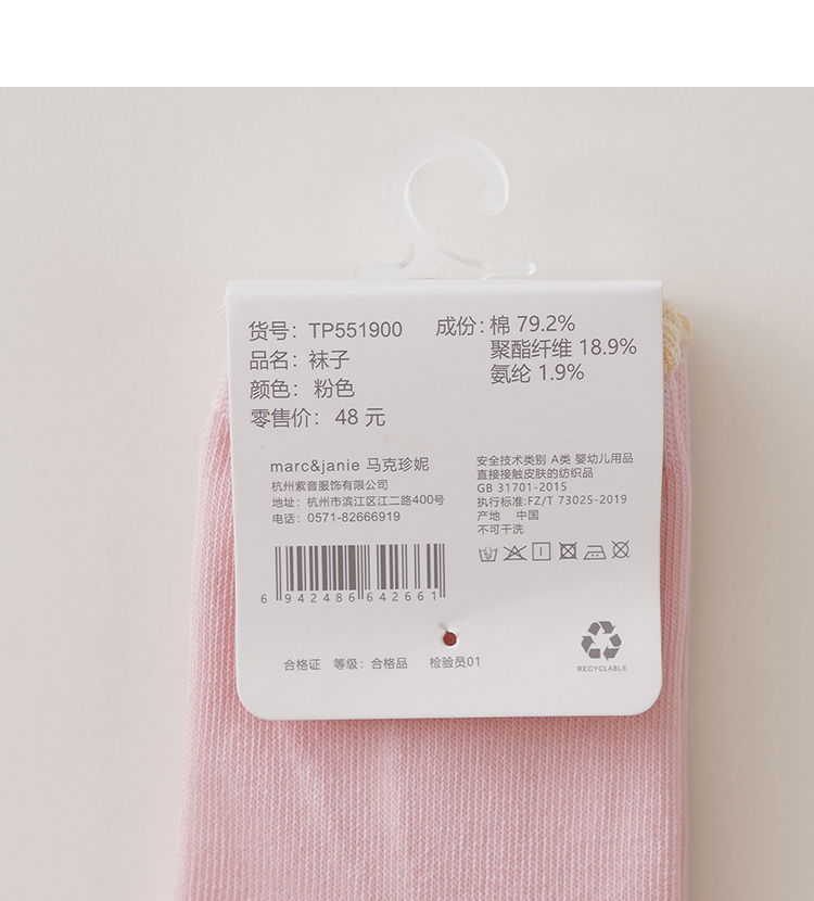 马克珍妮女童四季穿花边蝴蝶结无骨中筒袜551900