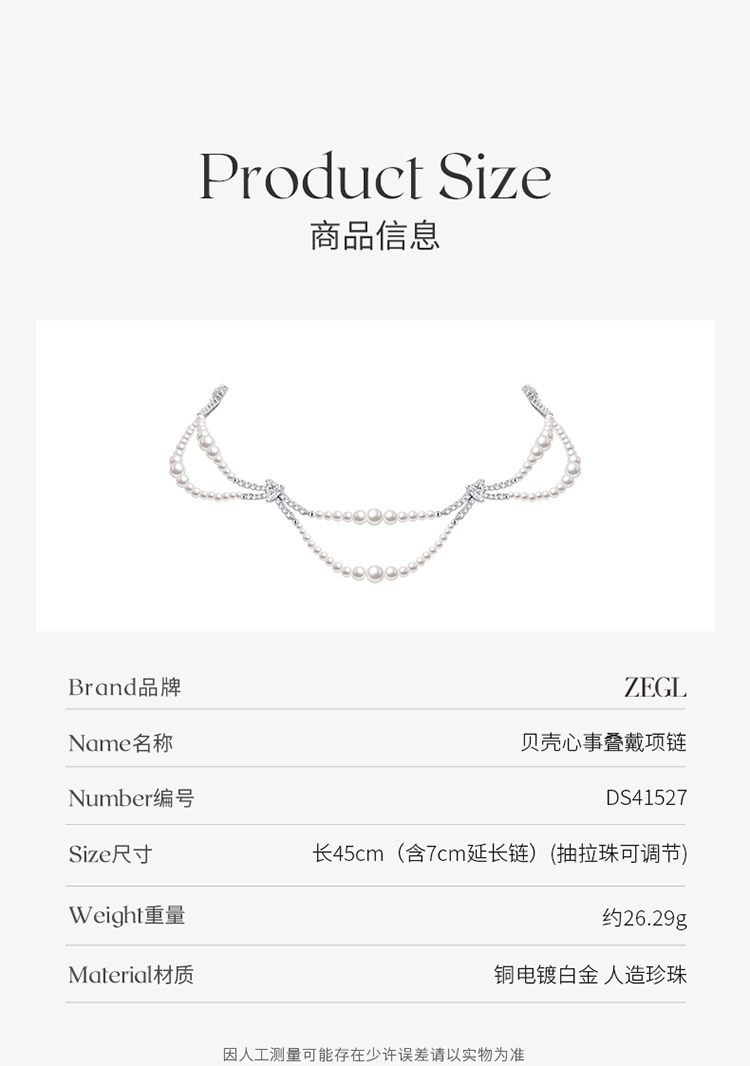 ZEGL设计师贝壳心事系列法式人造珍珠项链女轻奢小众高级感锁骨链