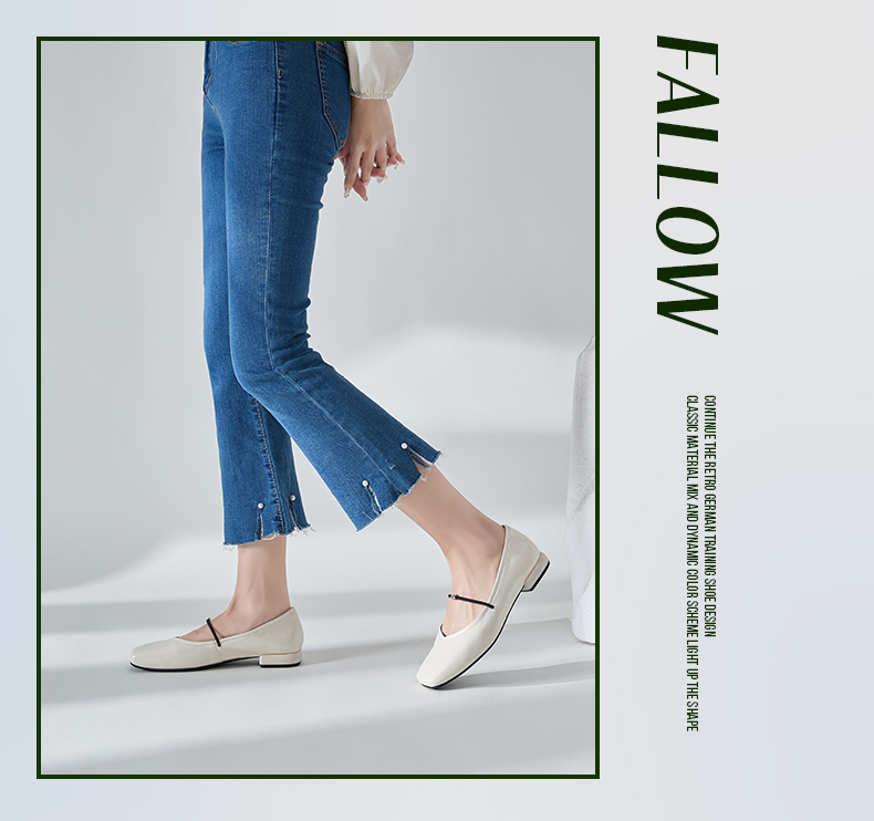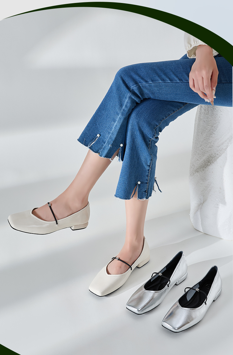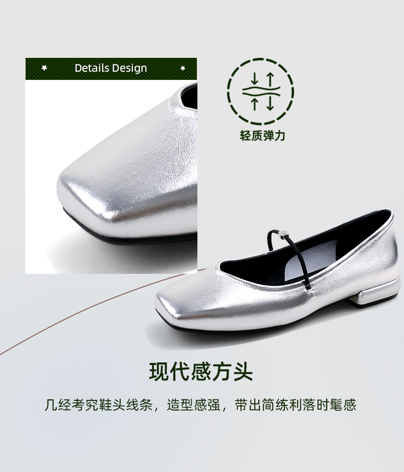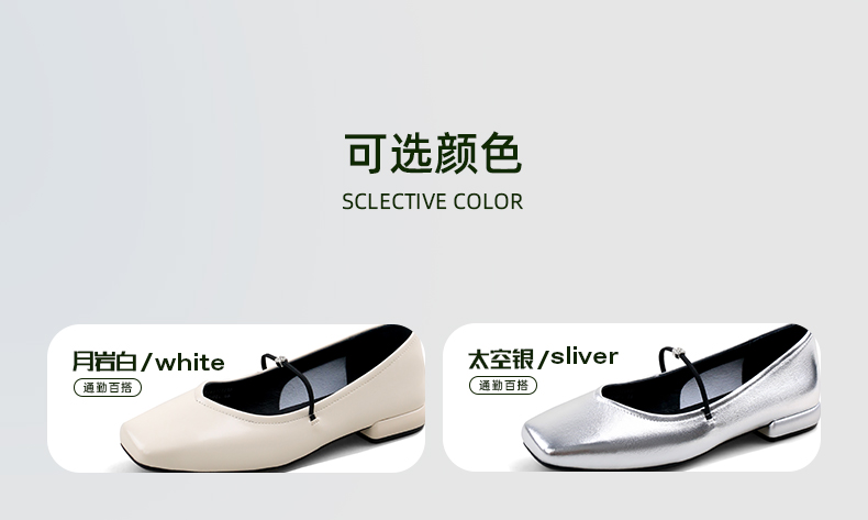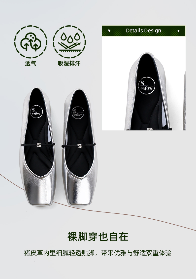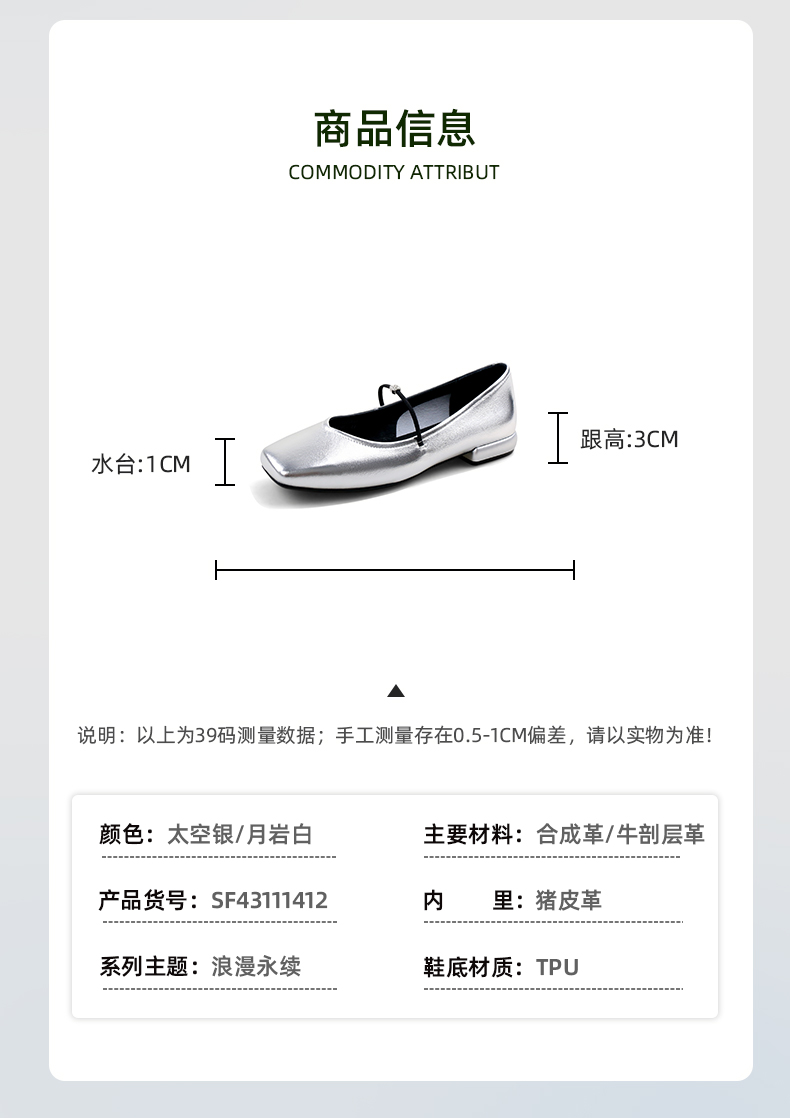 Safiya/索菲娅2024秋 法式方头一字带浅口通勤平底玛丽珍单鞋 SF43111412