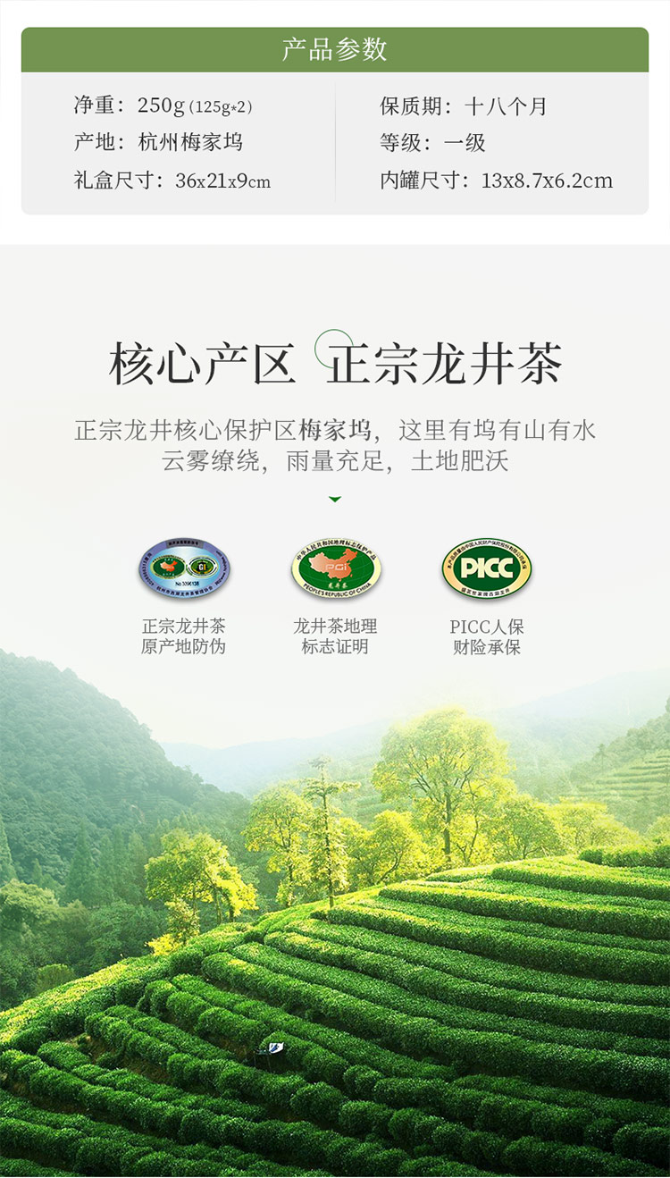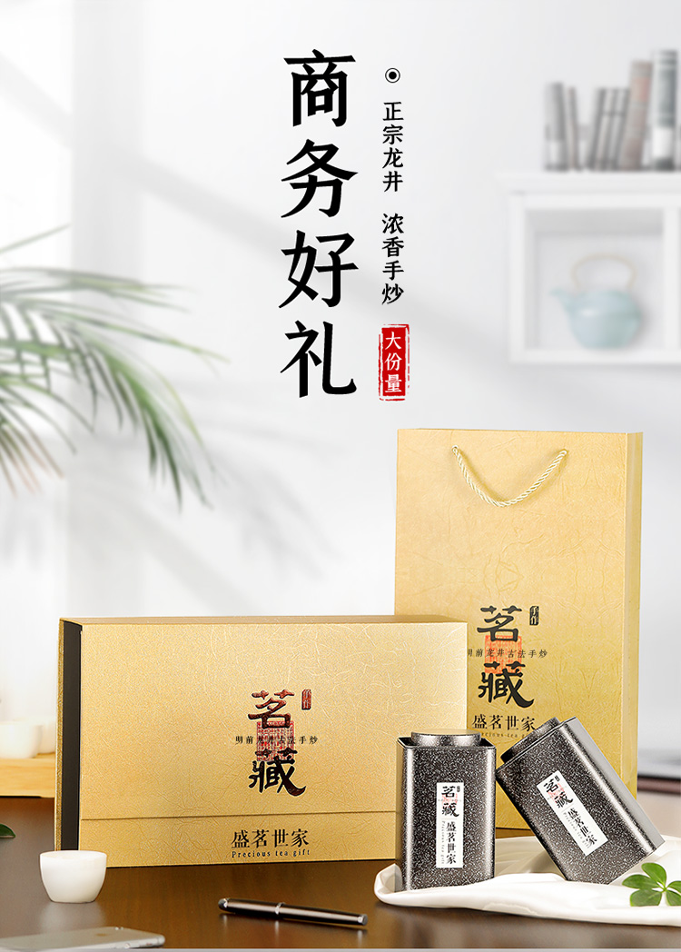 盛茗世家 茶叶绿茶 明前浓香龙井茶礼盒装大份量西湖春茶250g