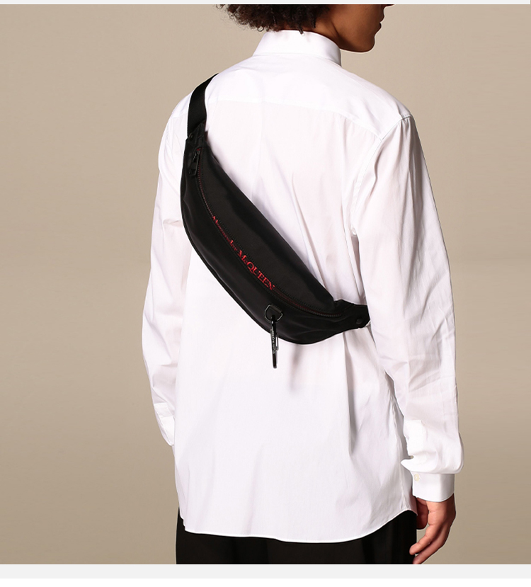 ALEXANDER MCQUEEN 亚历山大·麦昆 男士黑色徽标印花腰包 605053 HV2BK 1083