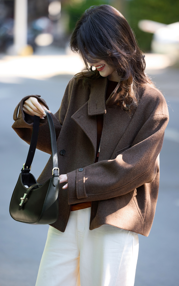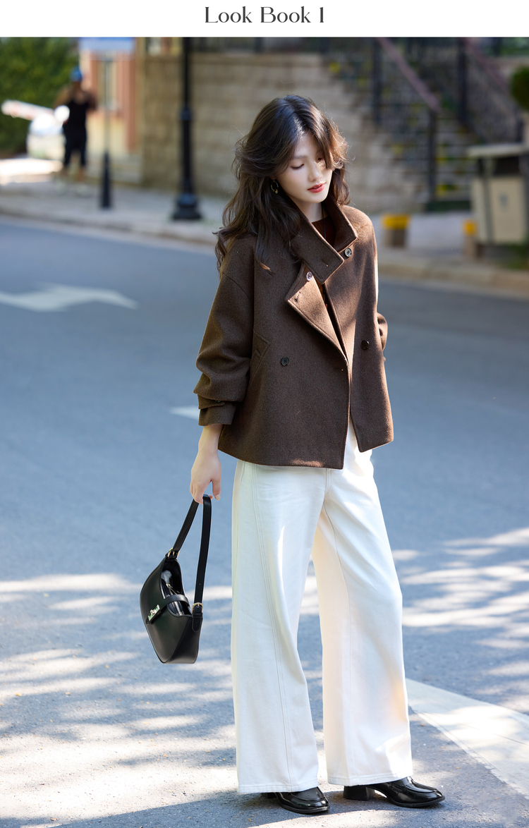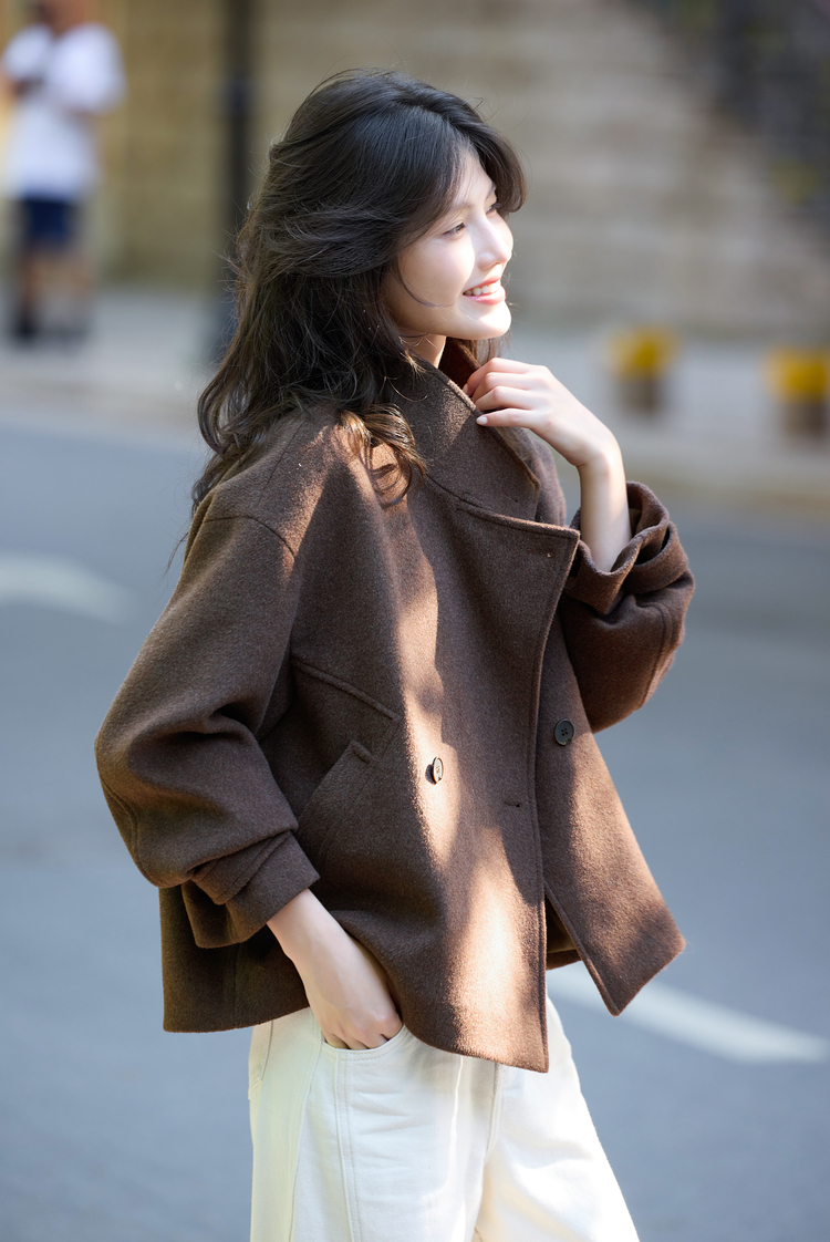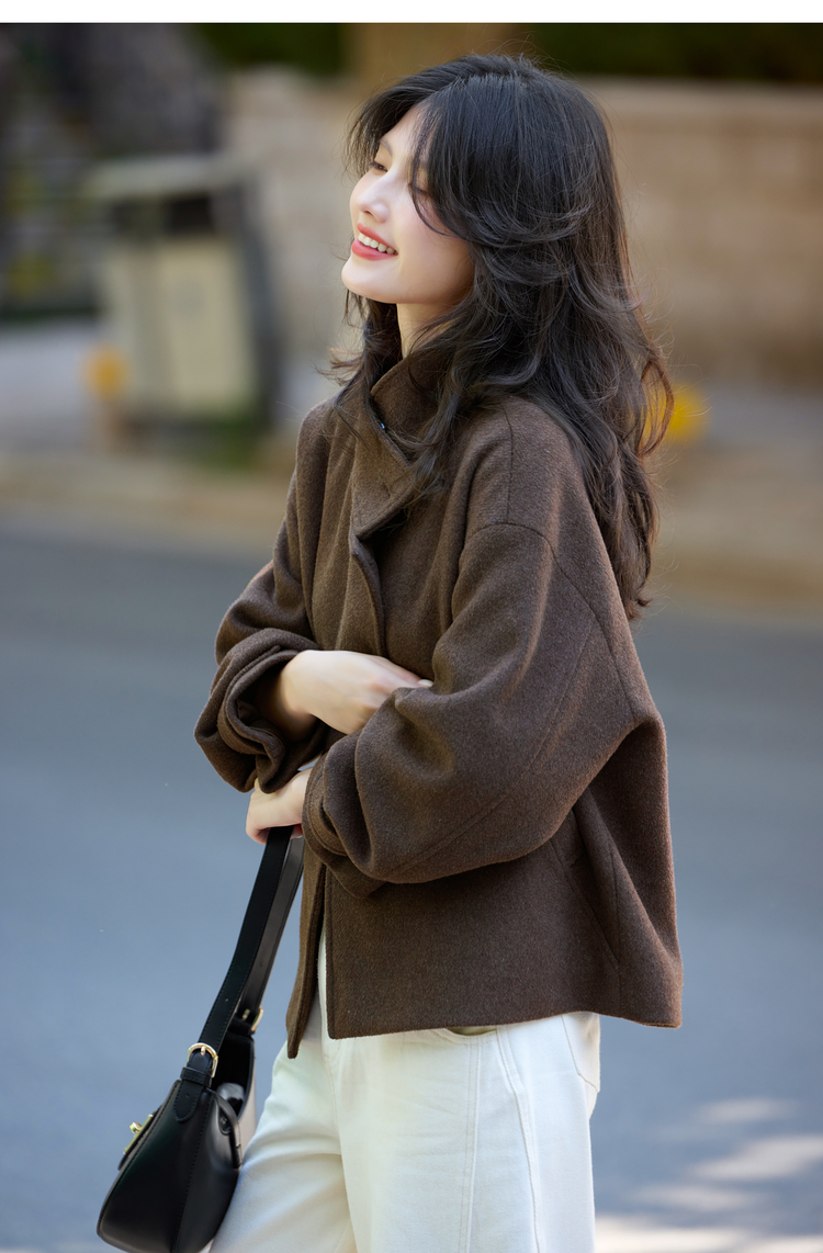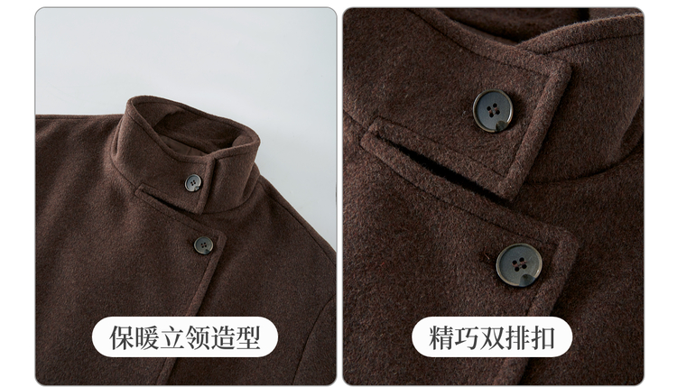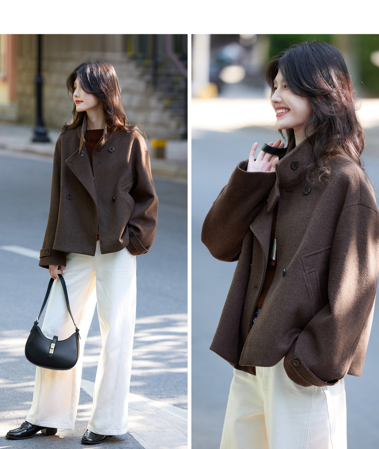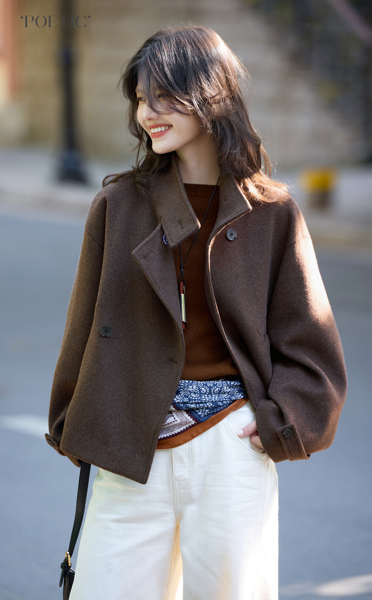 【11/14新品】熙世界老钱风复古棕色毛呢外套女小个子立领羊毛短款大衣2025秋冬