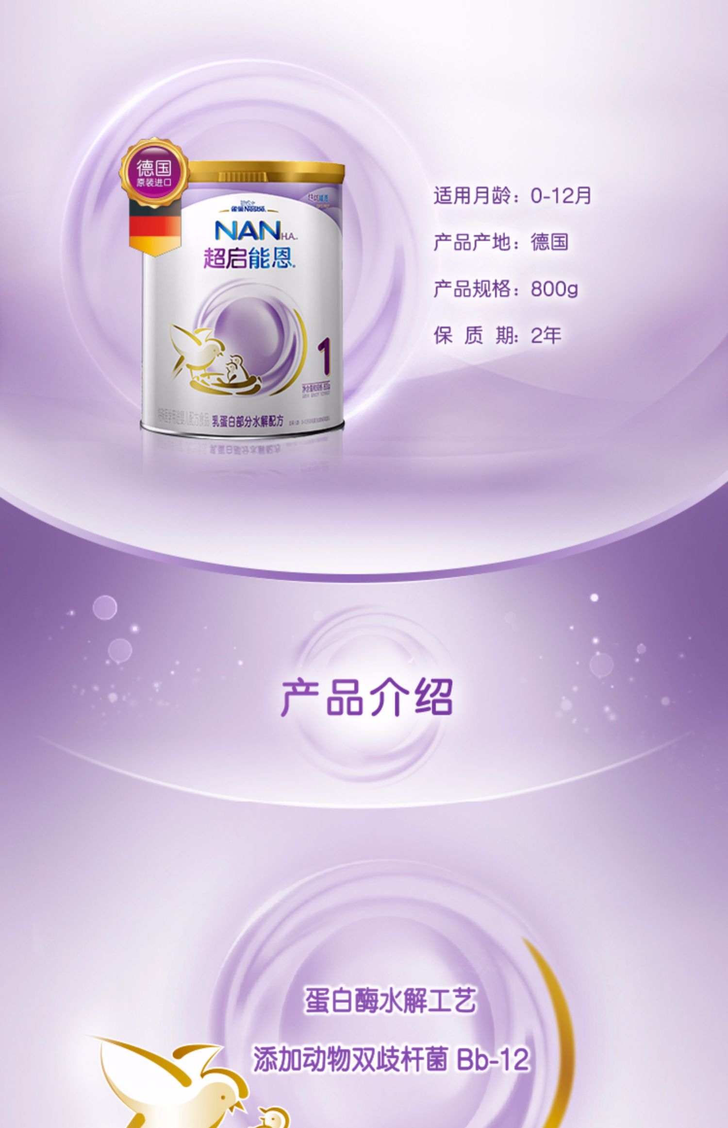 雀巢超启能恩1段800g婴幼儿部分适度水解奶粉