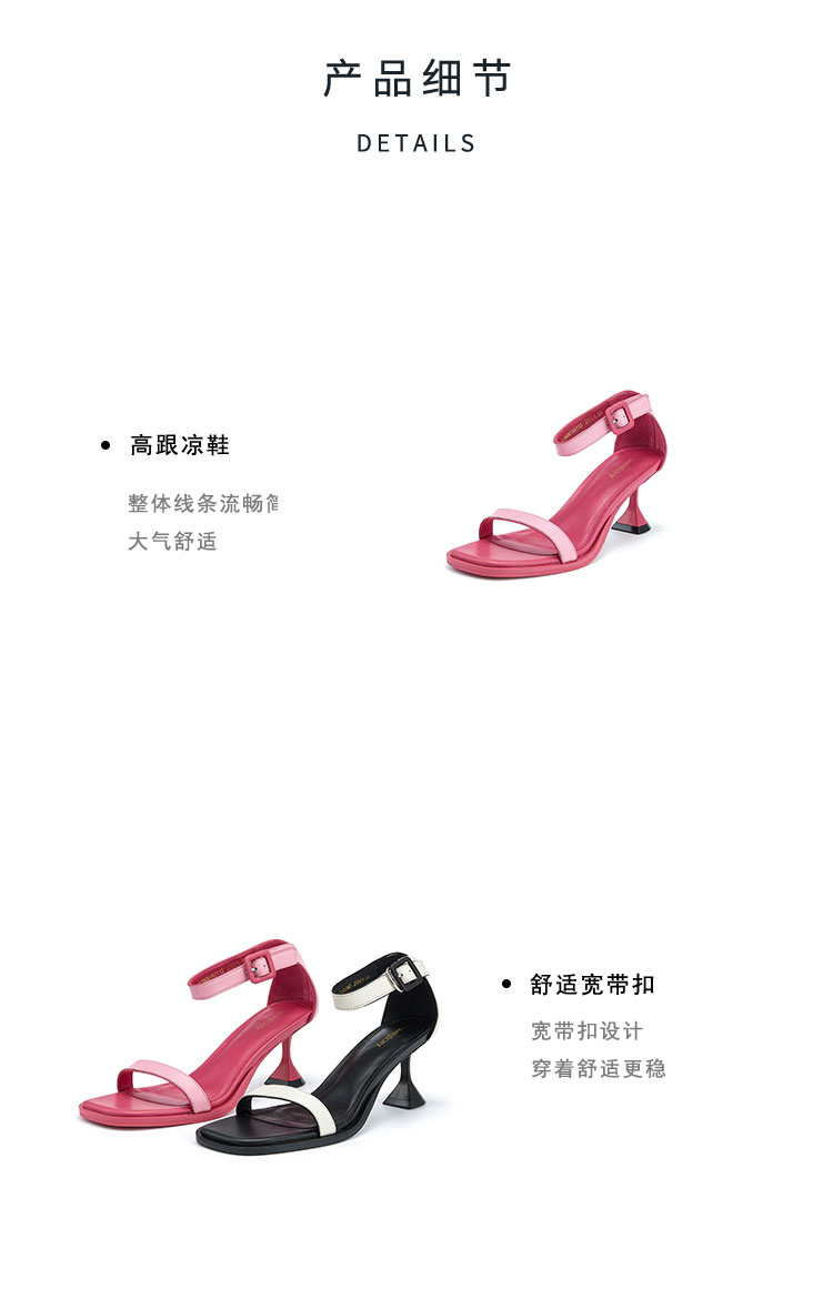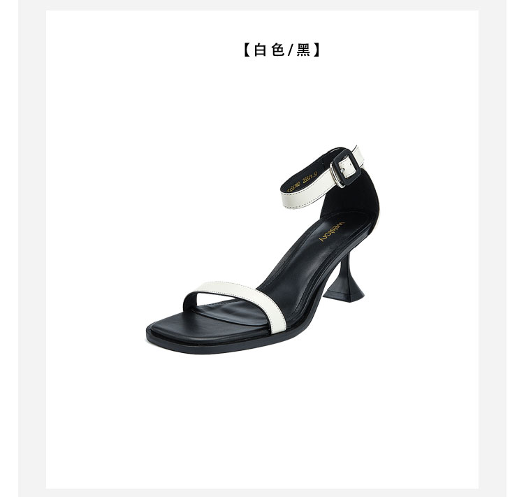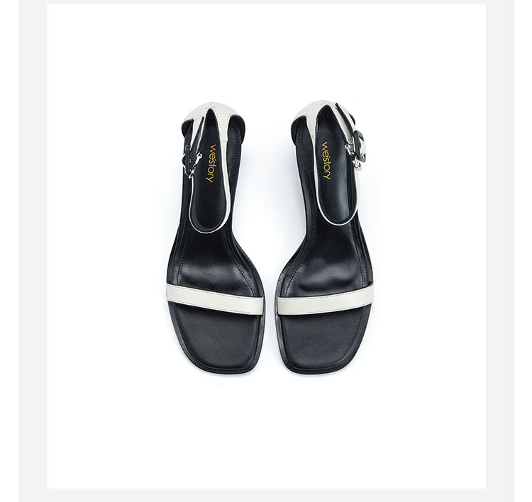 westory女鞋夏季尖头高跟细跟胎牛皮一字带凉鞋61531