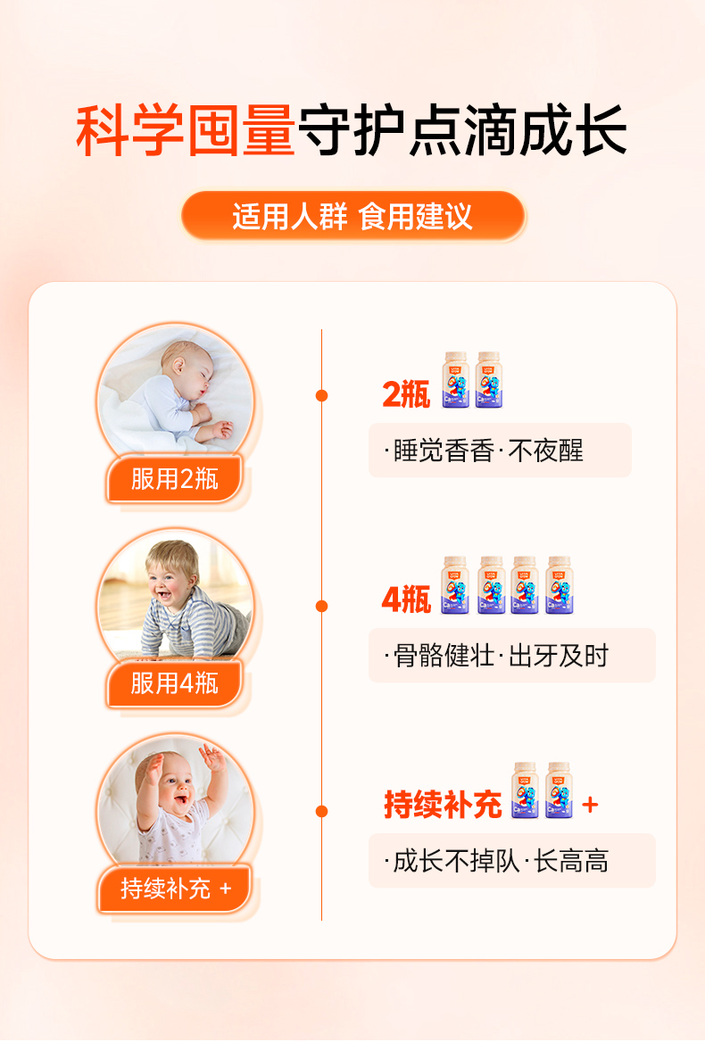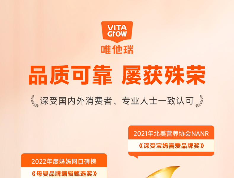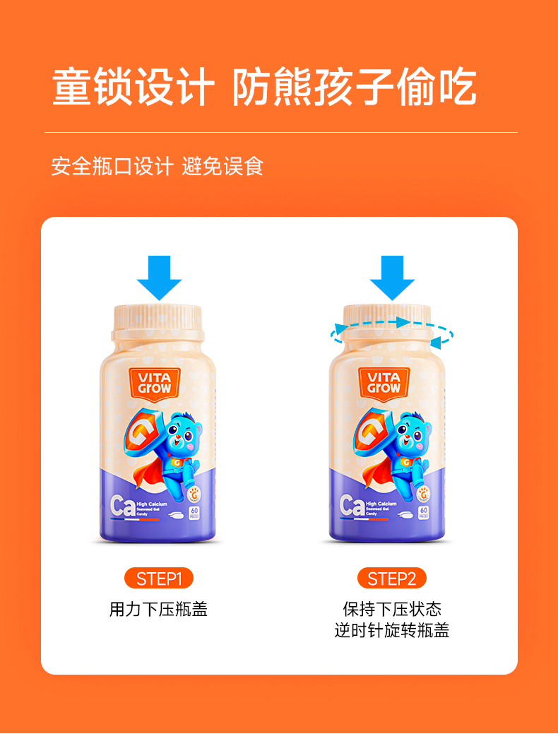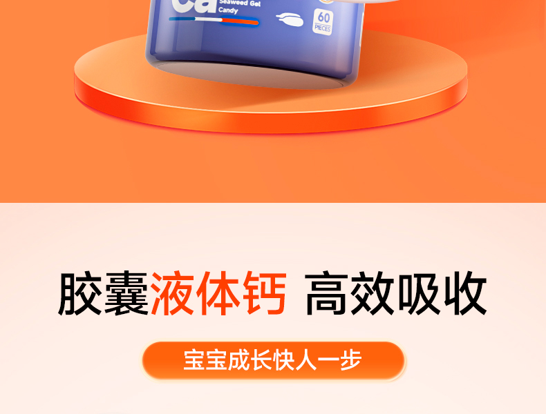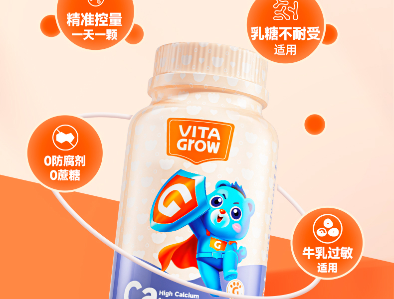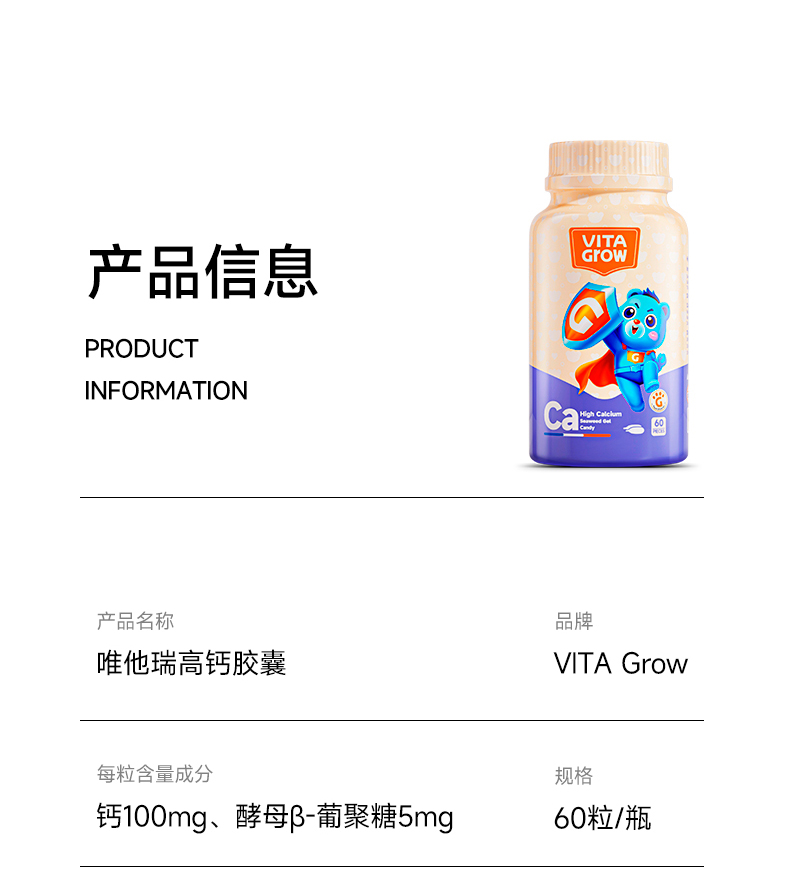 【双11返场】VITA Grow唯他瑞婴幼儿海藻钙软胶囊 60粒/瓶 (有效期至26年6月27日)