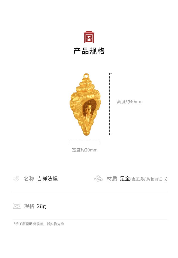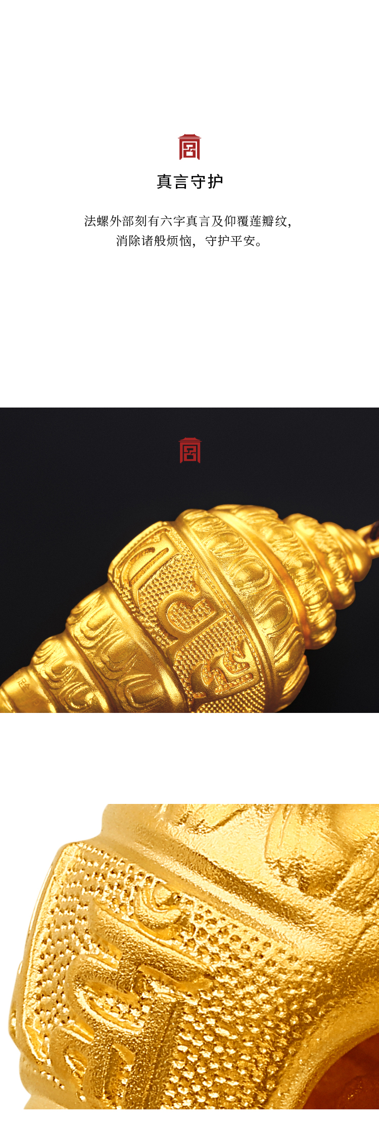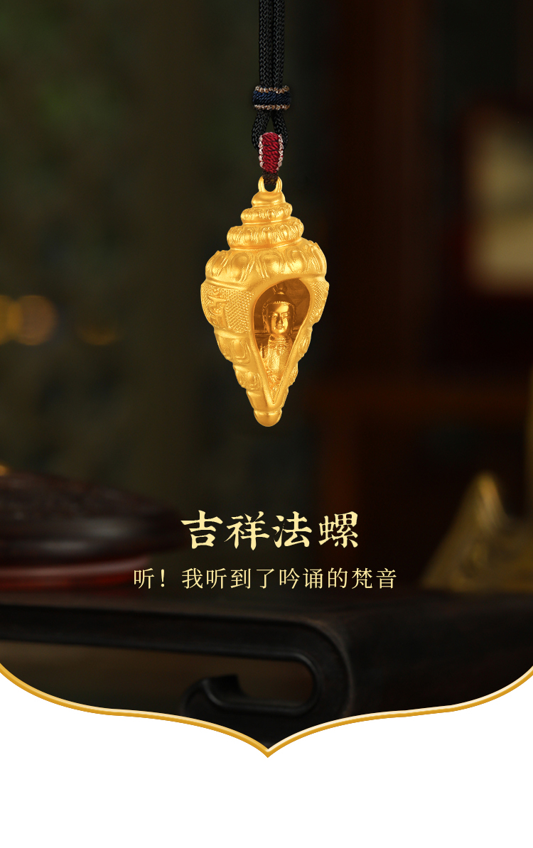 宫匠造办 宫廷福佑 吉祥法螺黄金吊坠