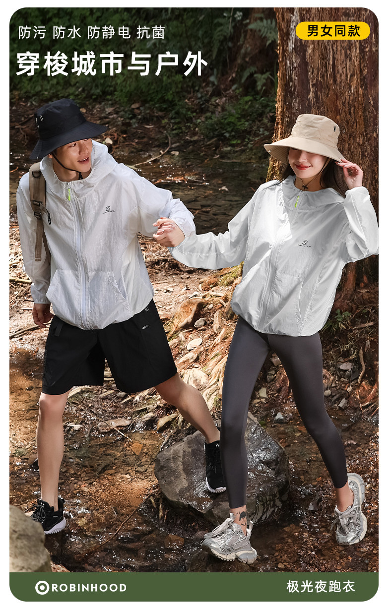 【夜发光】罗宾汉极光夜跑户外骑行衣全身夜光衣男女百搭三防连帽皮肤衣