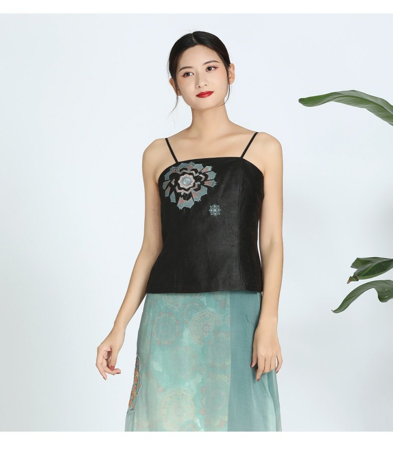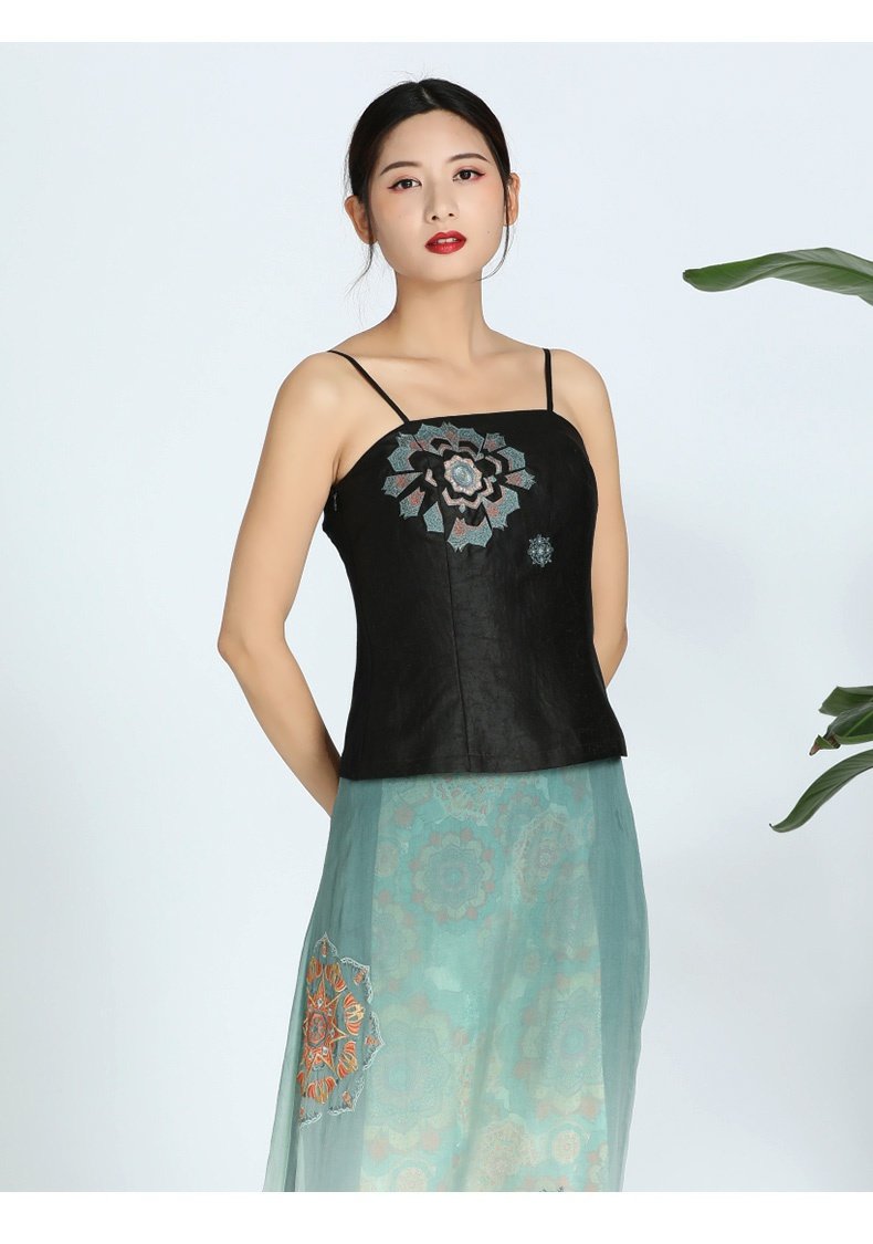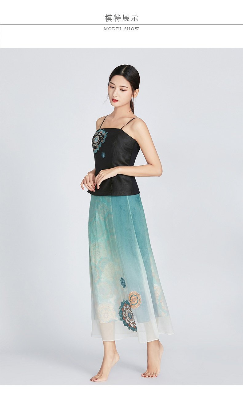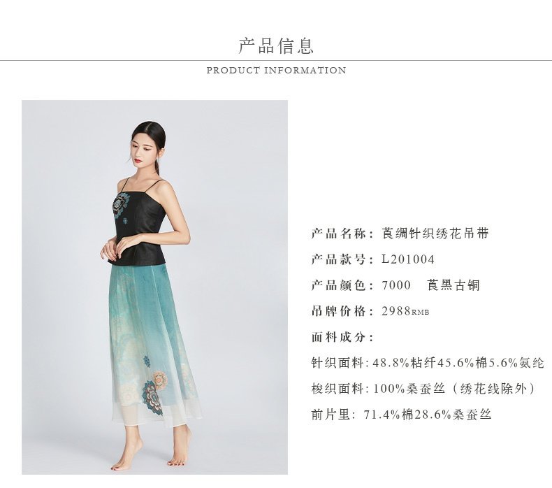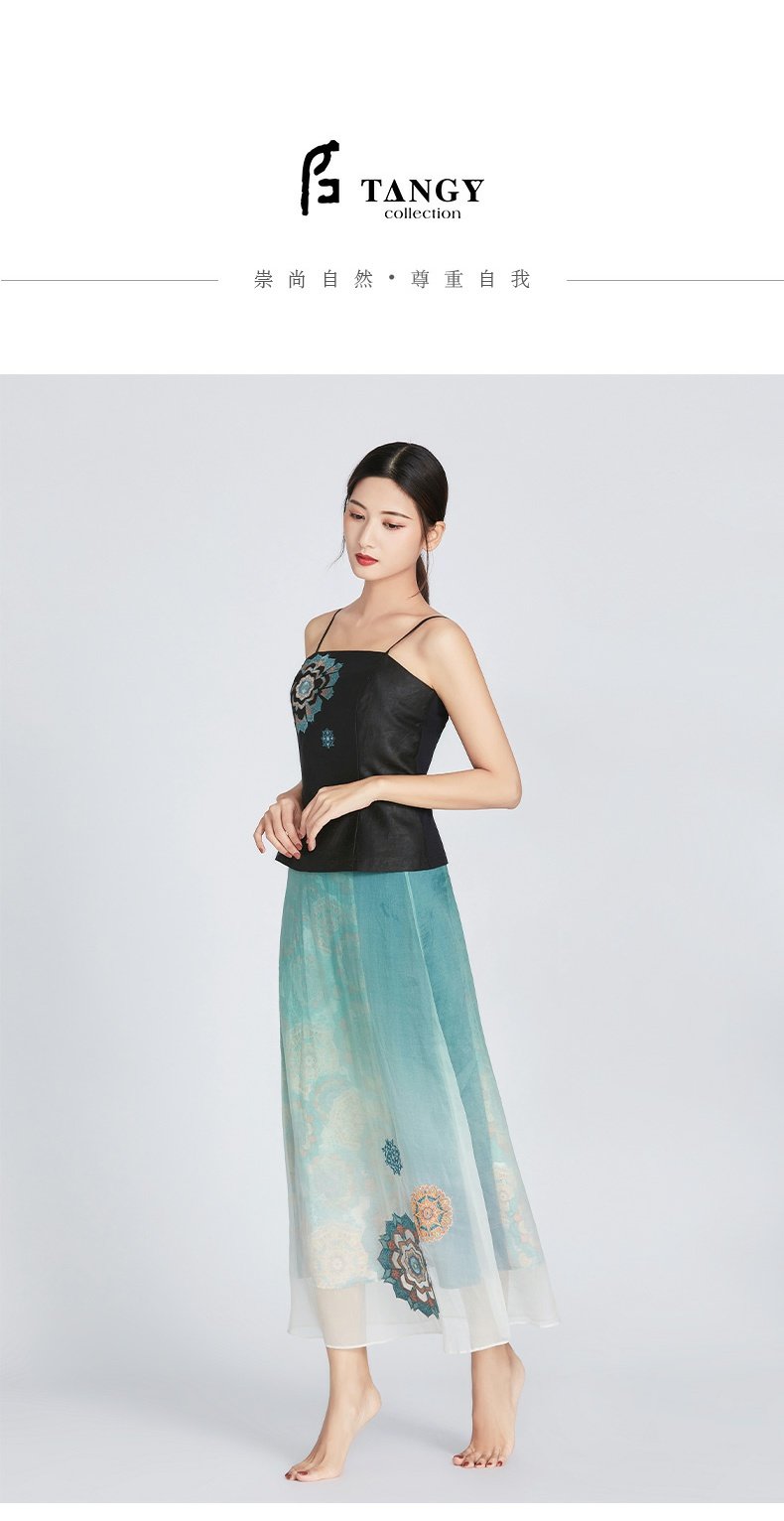 TANGY Collection/天意精品春夏新品圣光系列真丝莨绸针织绣花吊带