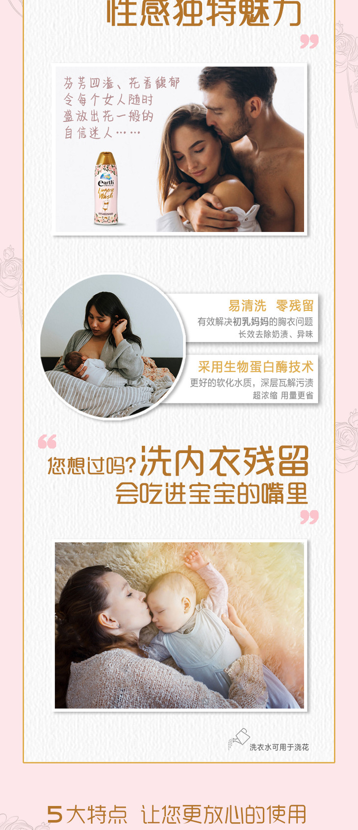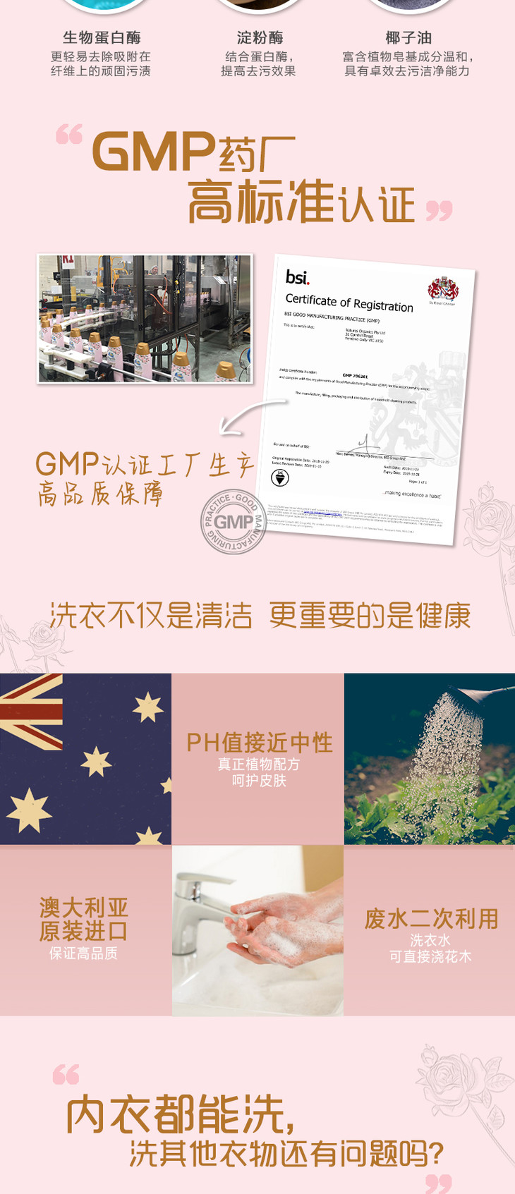功效:采用生物蛋白酶技术 孕妇不入期必备 清洗内衣无残留 无磷无荧光剂 深层去血渍 奶渍