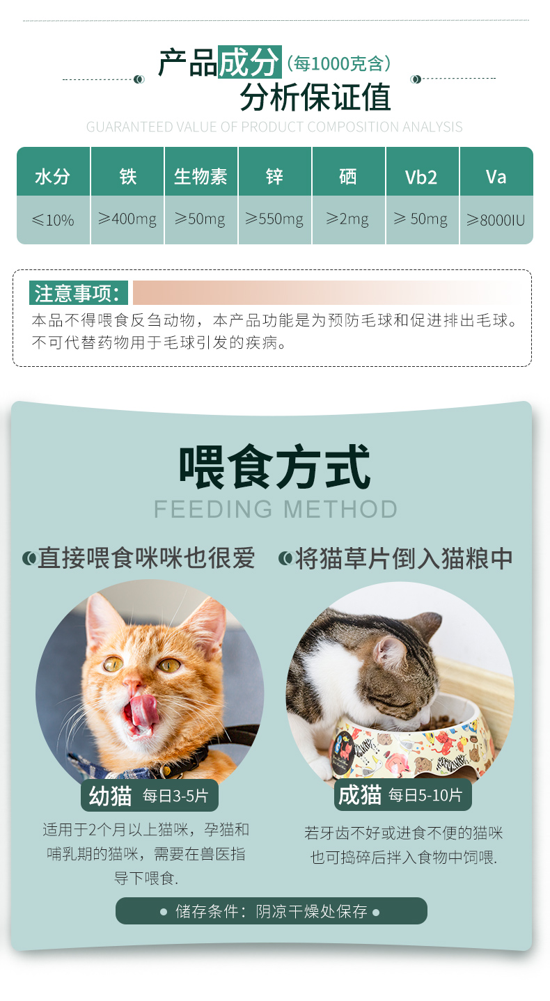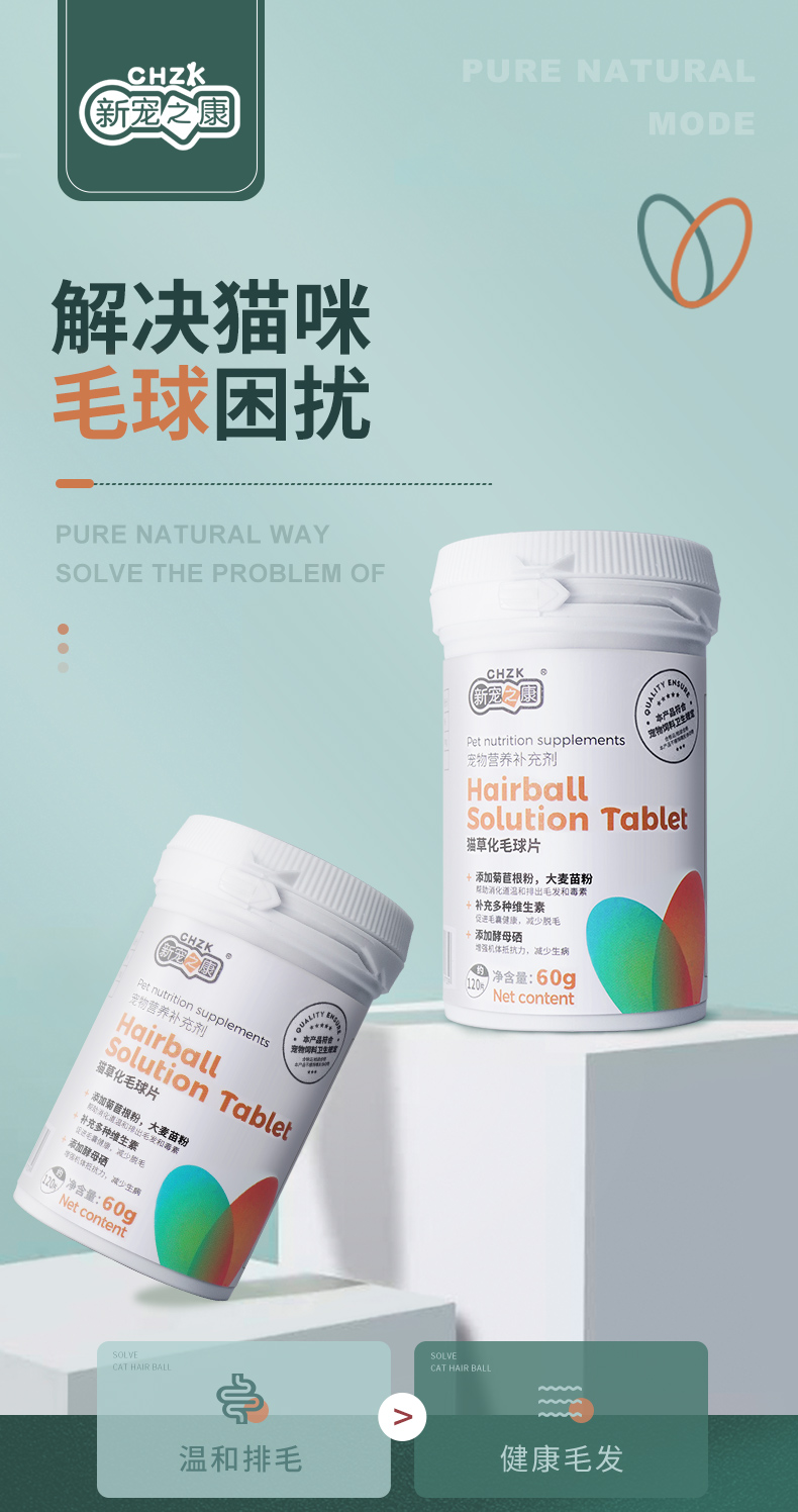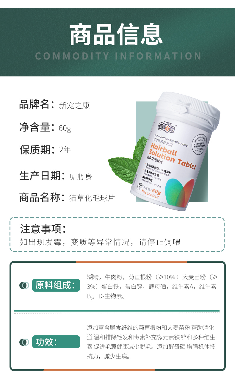 新宠之康-猫草化毛球片-60g天然植物去毛球调理肠胃猫咪化毛片