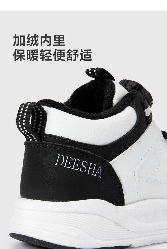 笛莎Deesha 女童童鞋2025冬季新款加绒休闲高帮板鞋