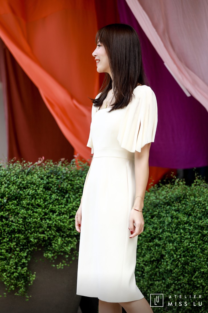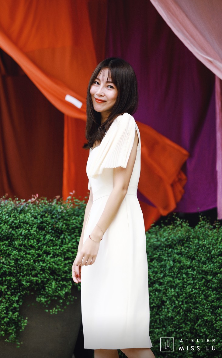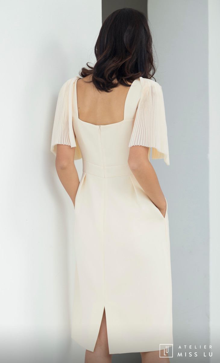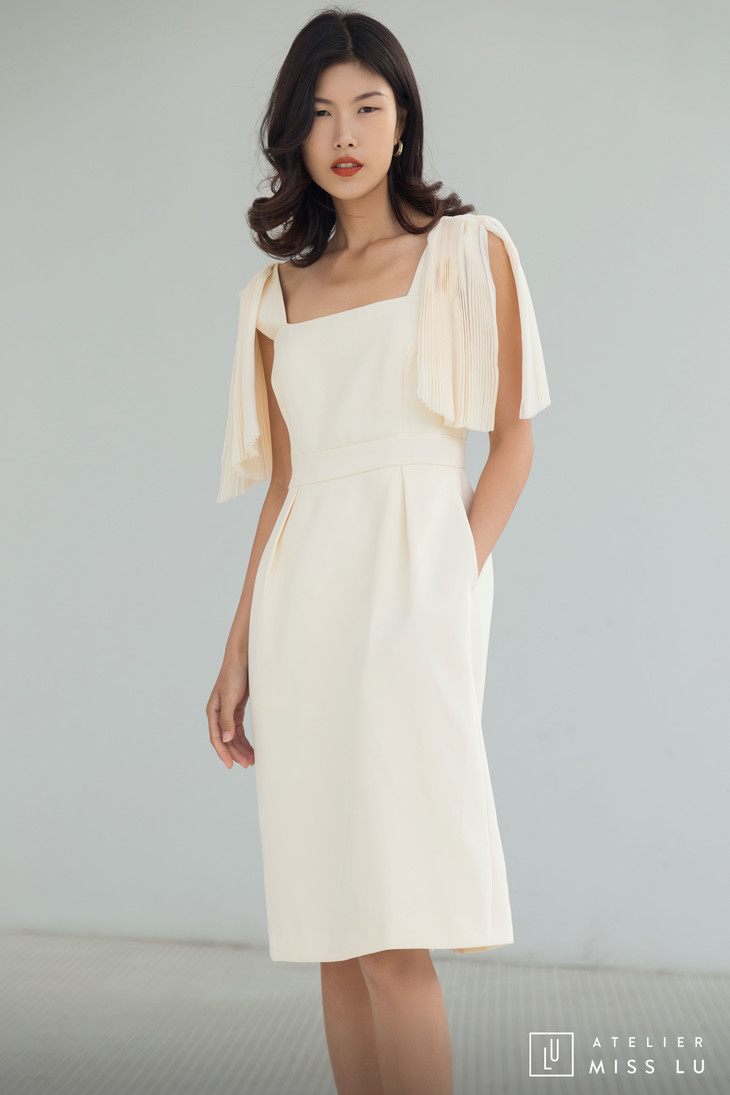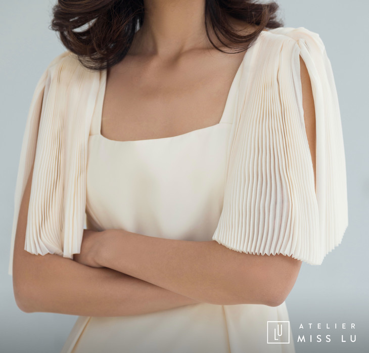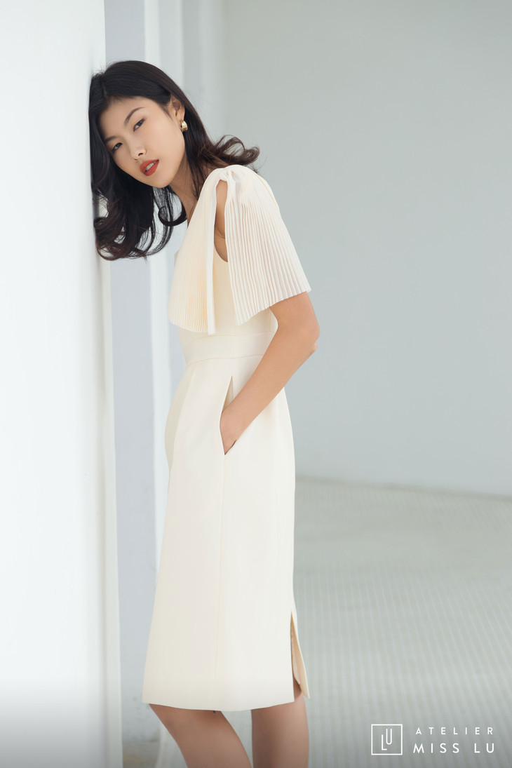 AtelierMissLu / Debbie-白色吊带风琴褶装饰连身裙
