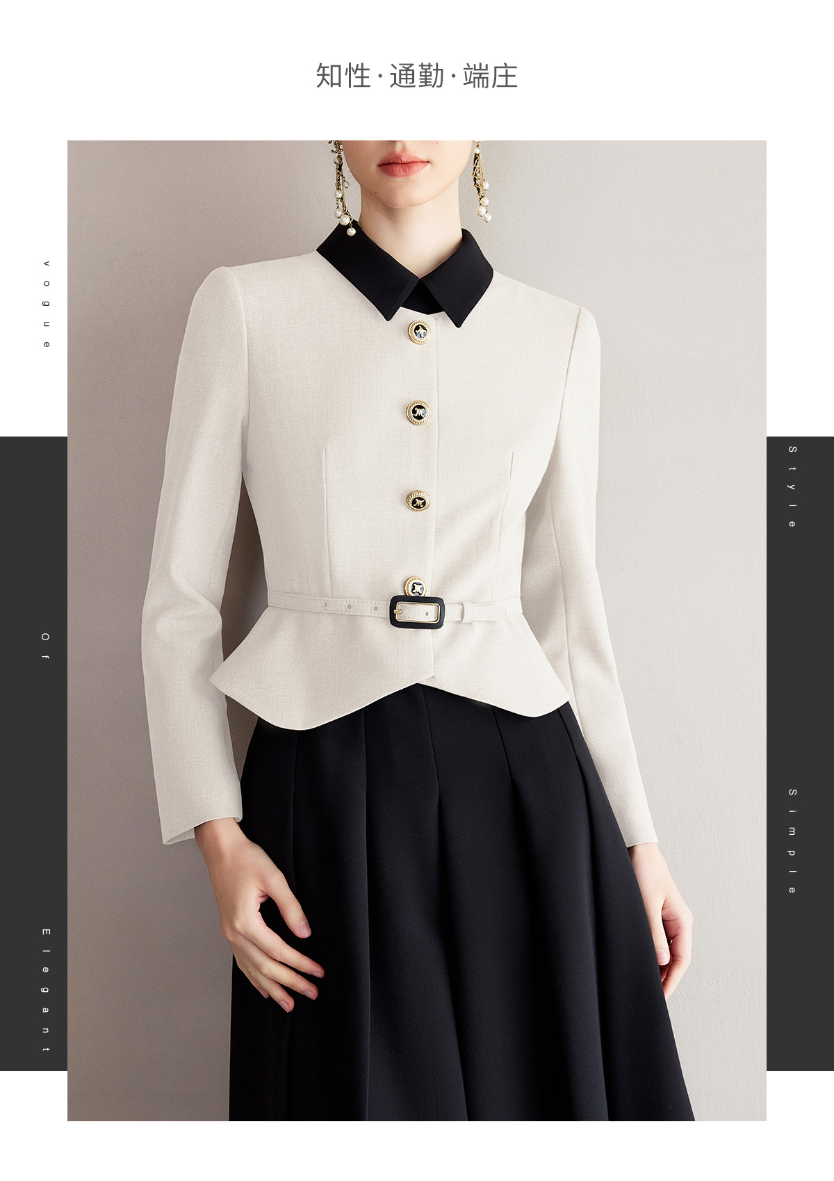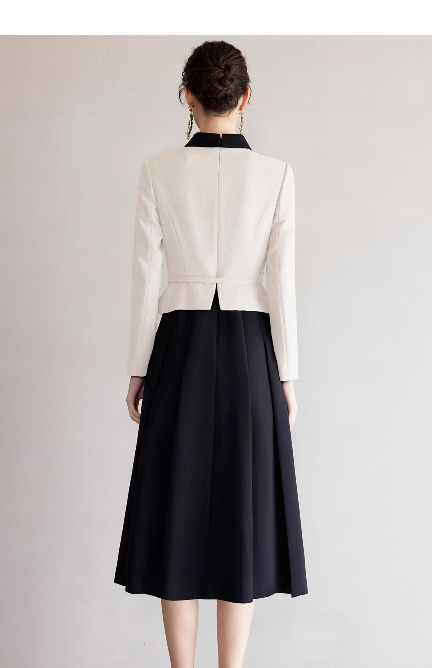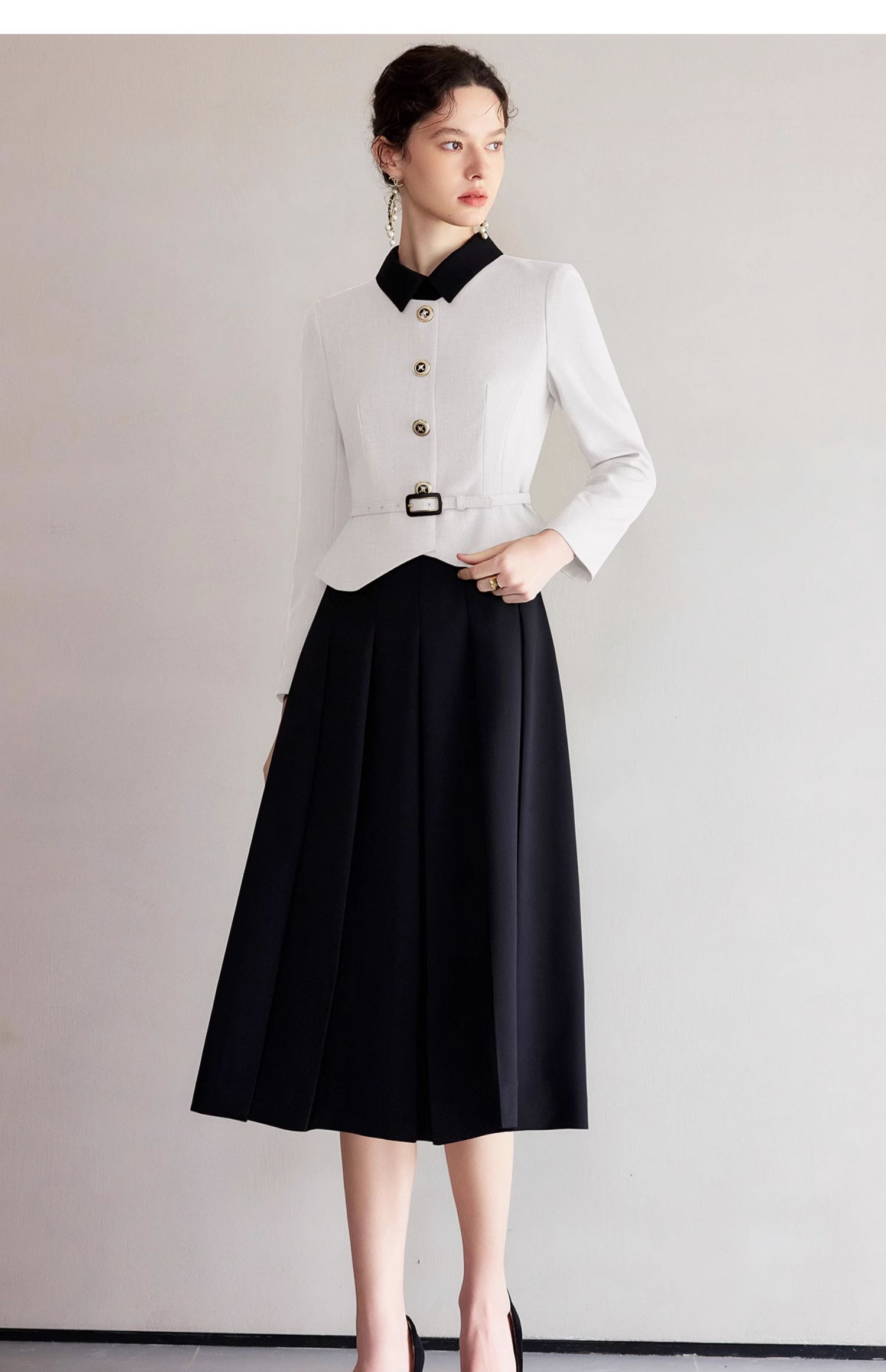 IWY/黑白拼色小翻领西装伞裙套裙气质经理工作服高级感职业装香风女Q1249