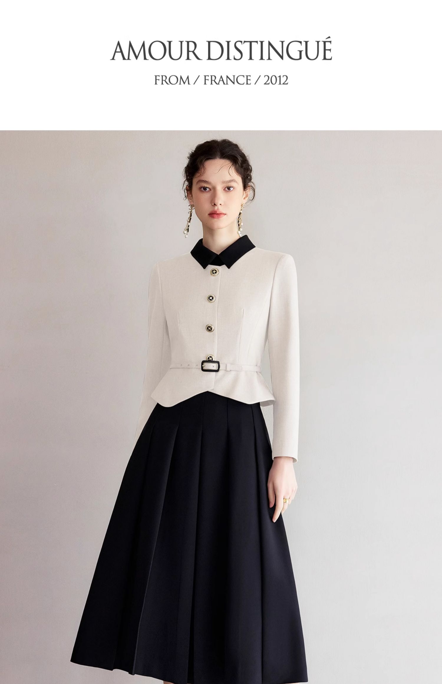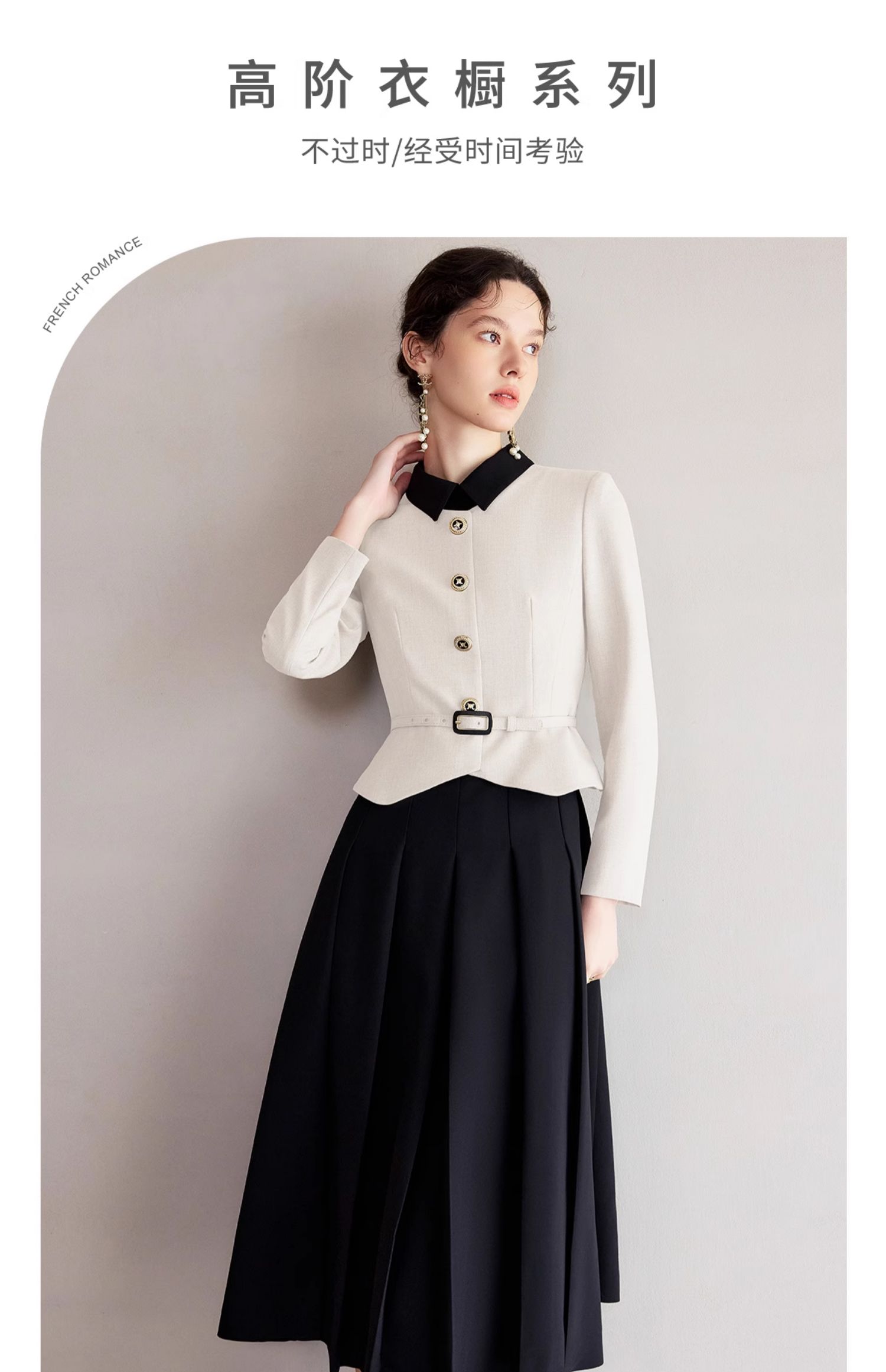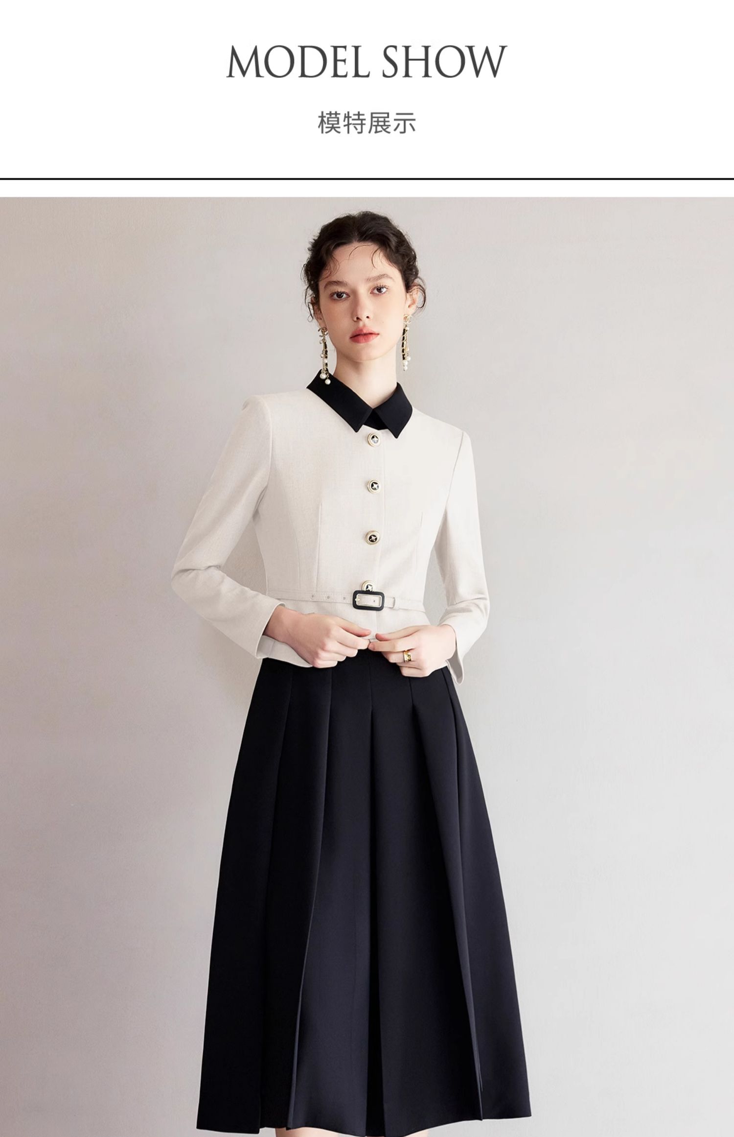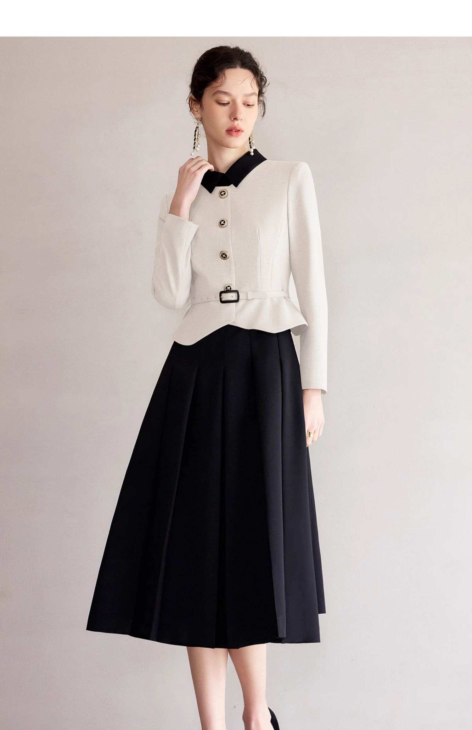 IWY/黑白拼色小翻领西装伞裙套裙气质经理工作服高级感职业装香风女Q1249