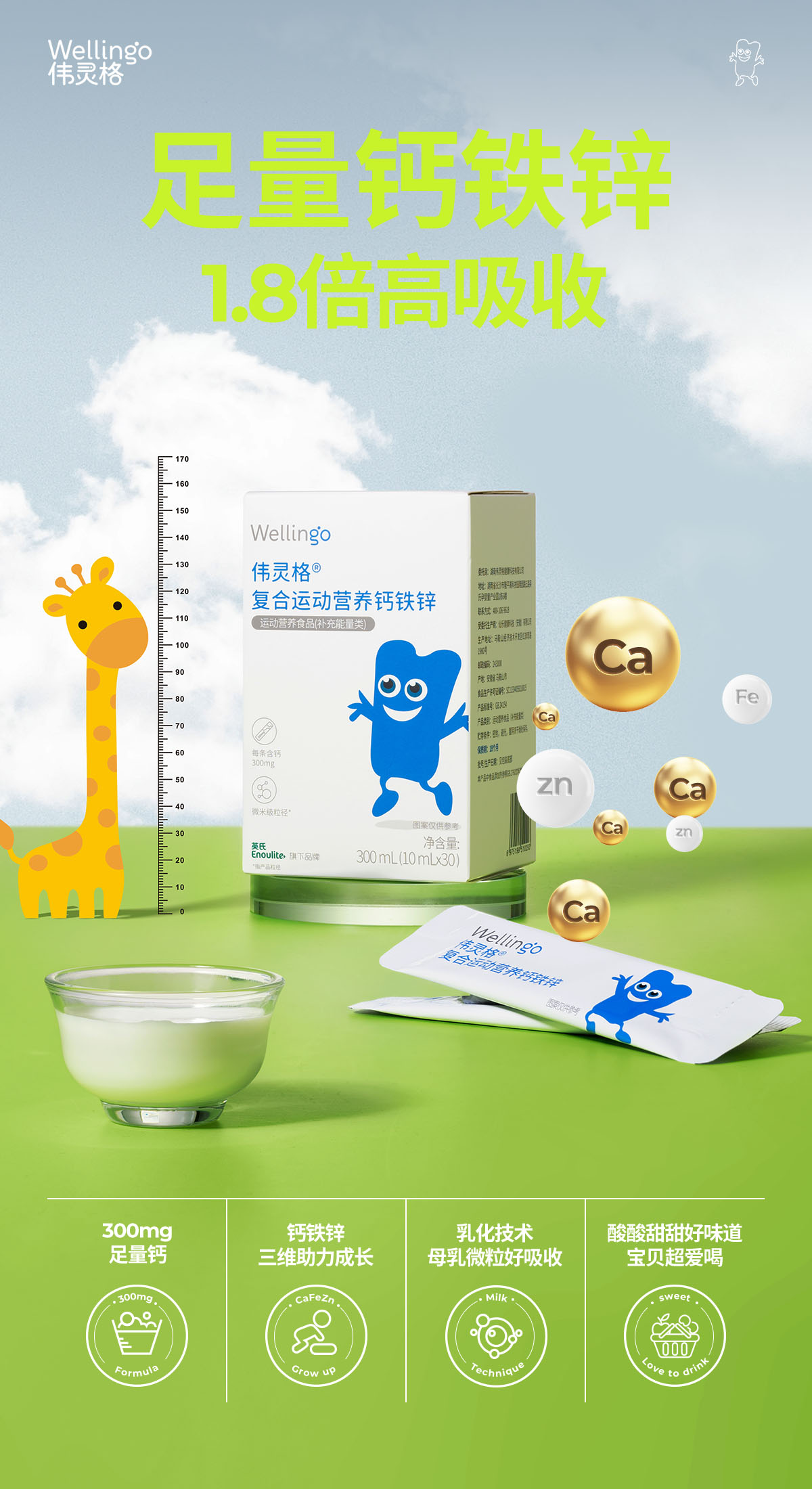 【单盒89元起】英氏伟灵格钙铁锌液体钙300ml