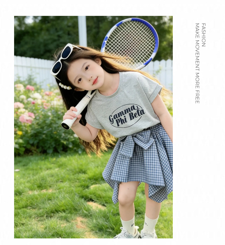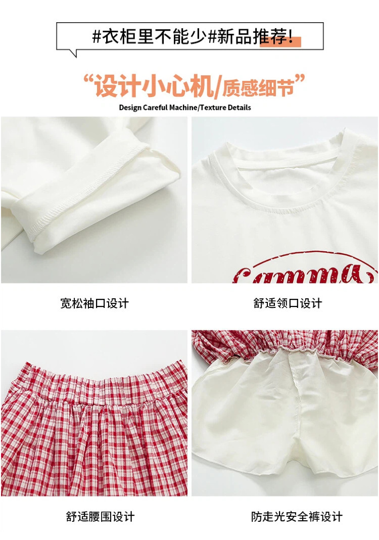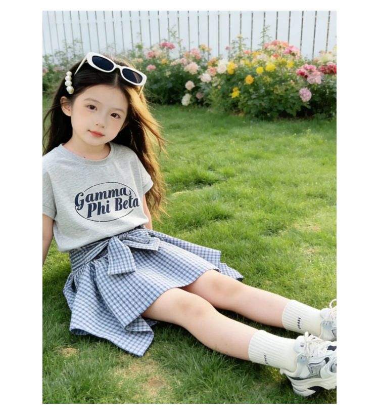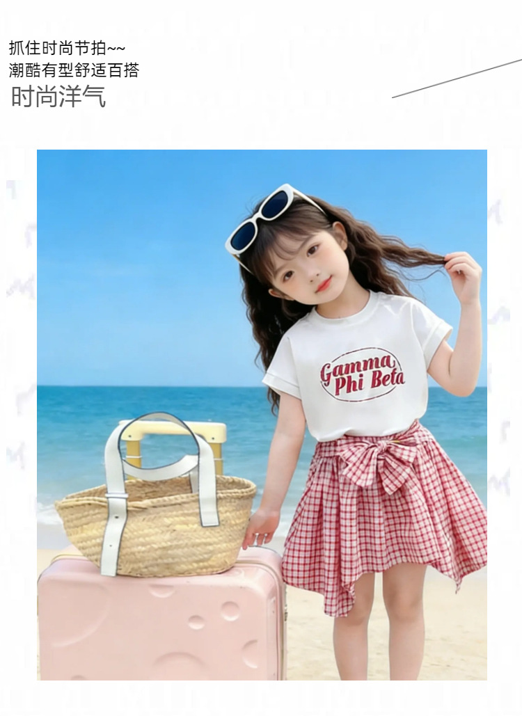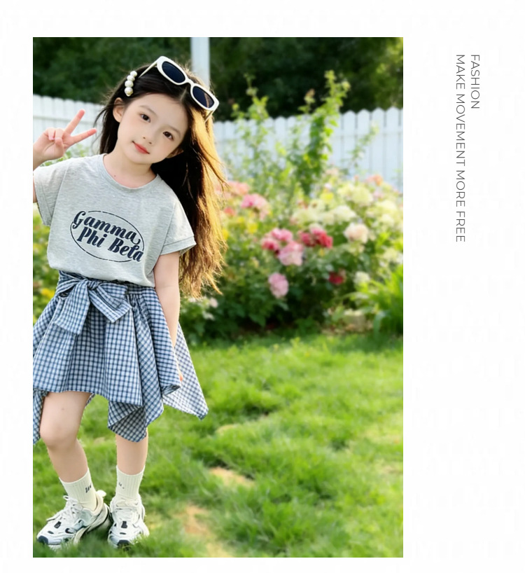 童洛萌女童洋气宽松夏季短袖套裙宝宝新款时髦格子裙薄款休闲两件90-150