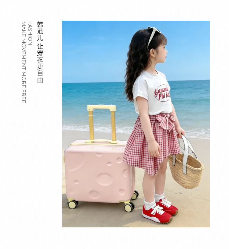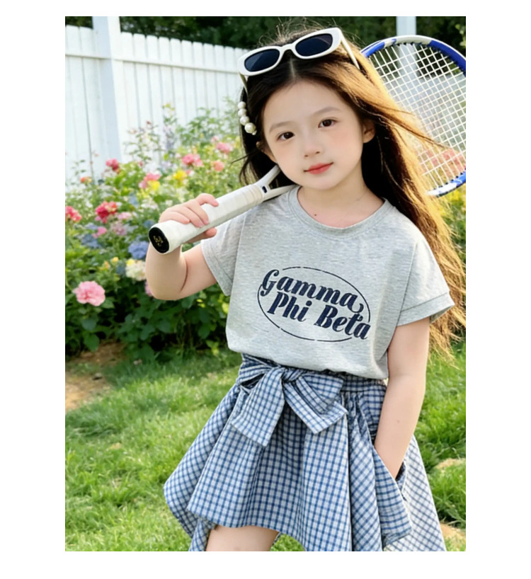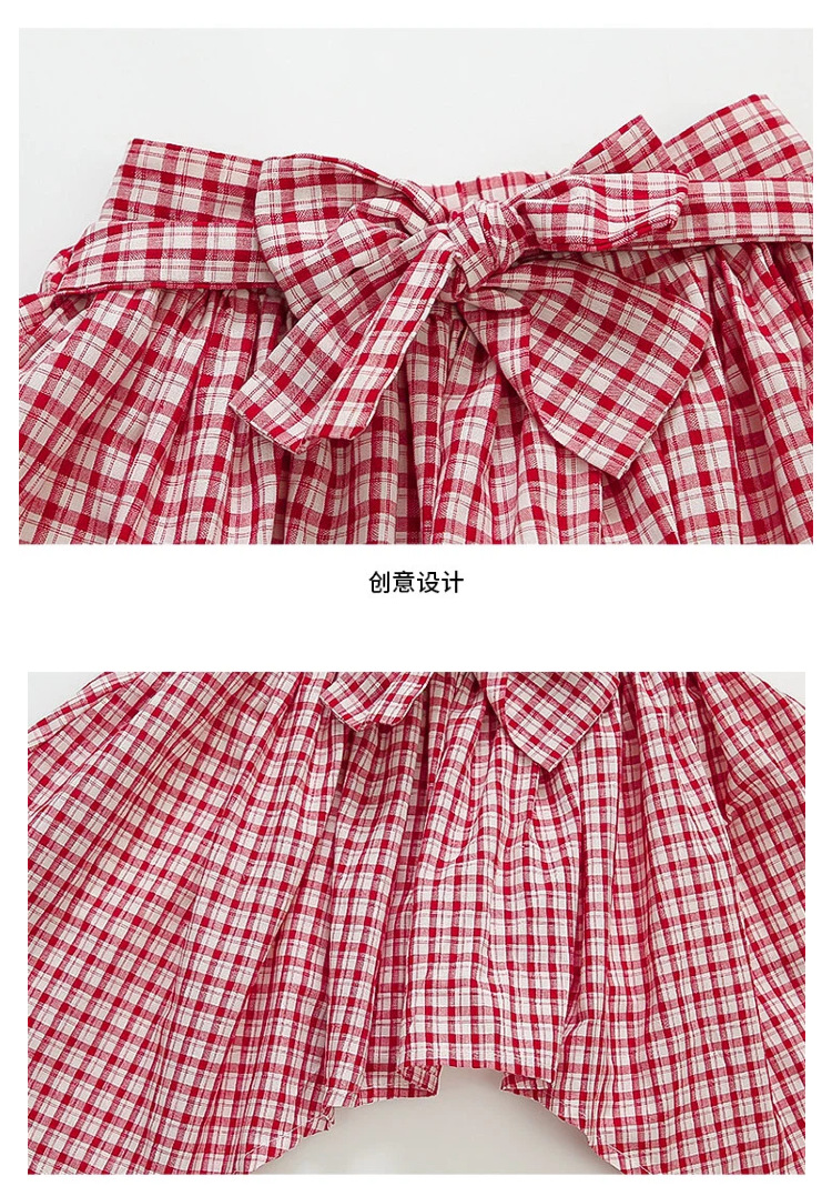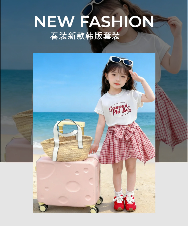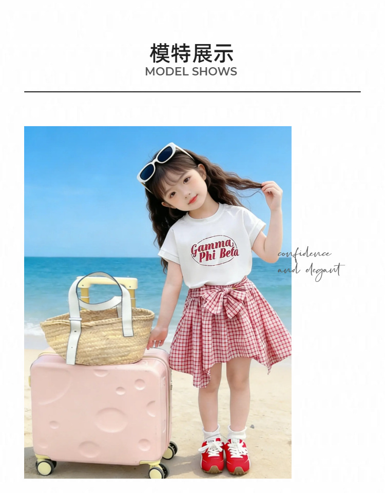 童洛萌女童洋气宽松夏季短袖套裙宝宝新款时髦格子裙薄款休闲两件90-150
