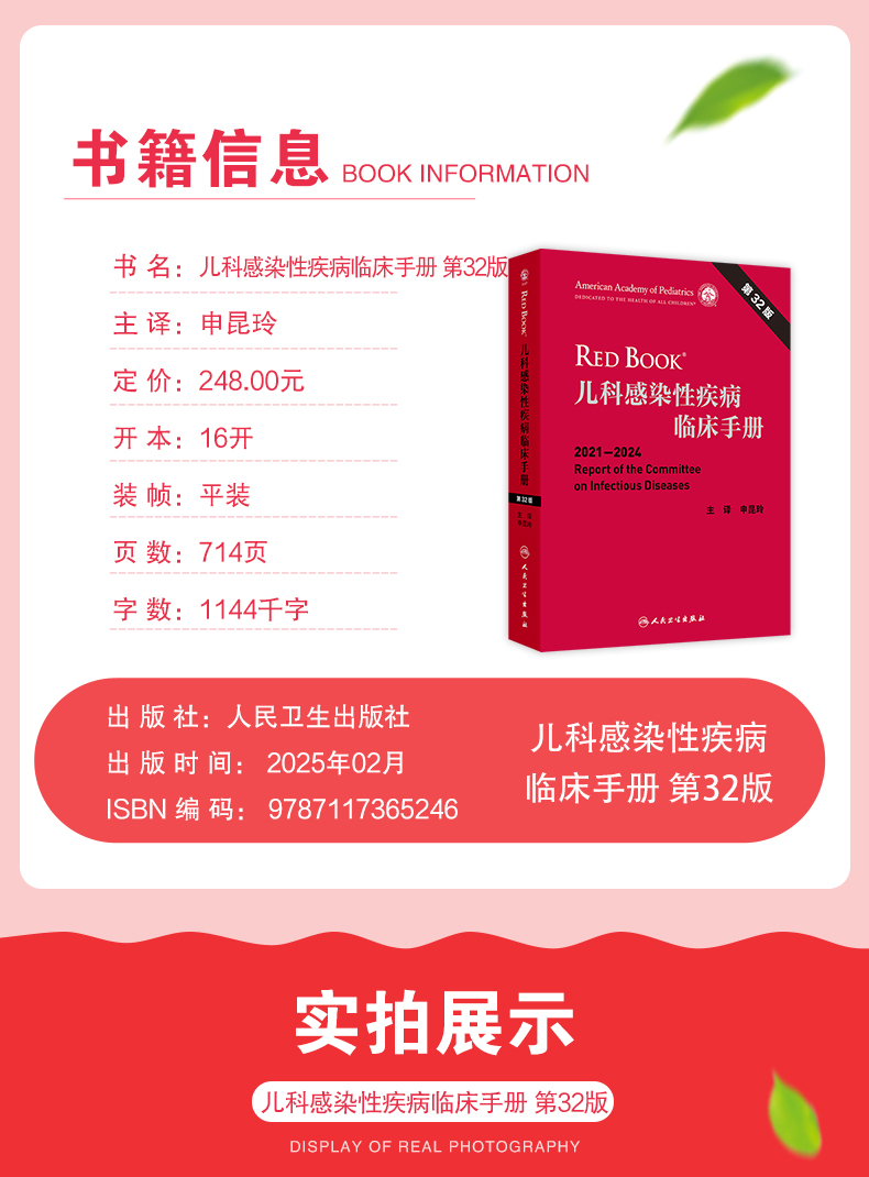 儿科感染性疾病临床手册 第32版 2021-2024 申昆玲主译 包括免疫常见感染性疾病血液安全性传播疾病药物治疗结核病等传染性疾病等