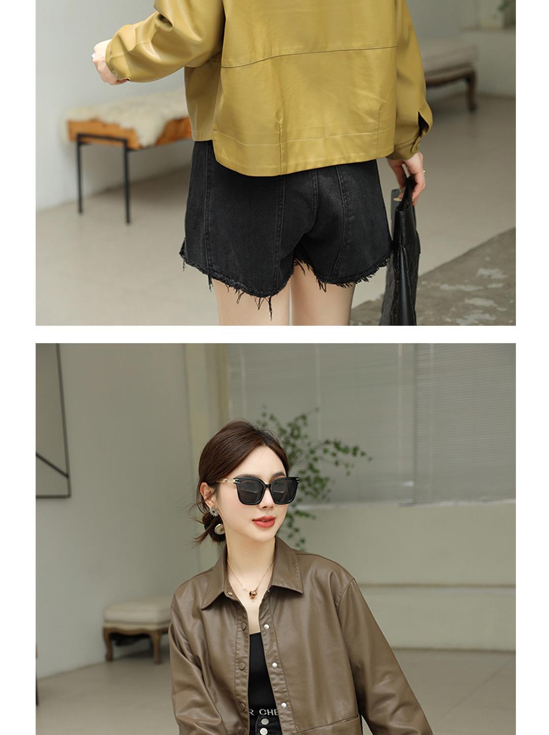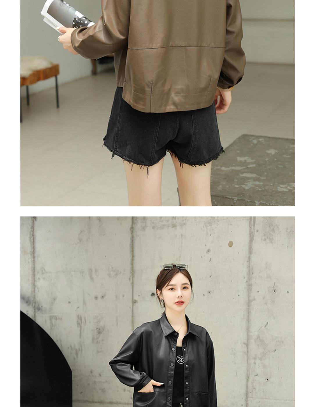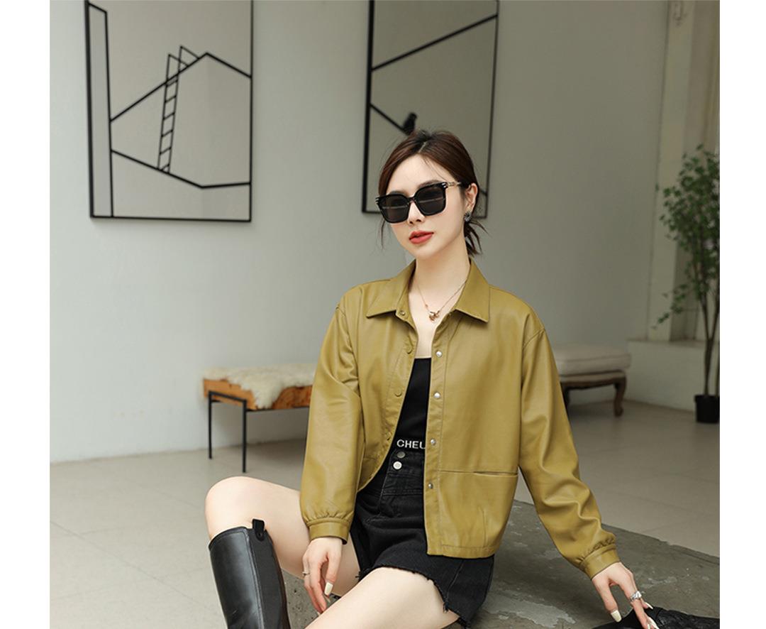2023秋季新款韩版短款皮衣外套女翻领水洗PU皮休闲皮夹克女
