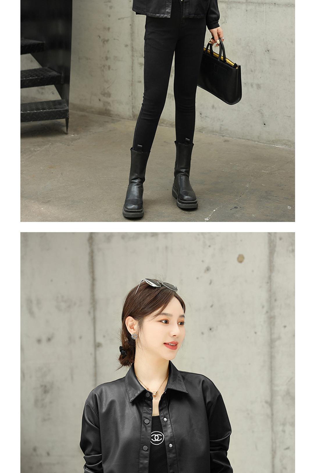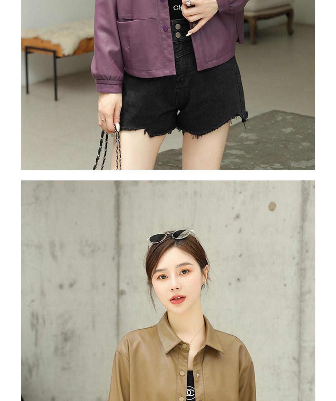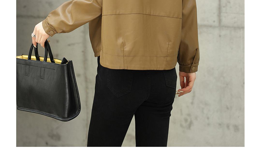 2023秋季新款韩版短款皮衣外套女翻领水洗PU皮休闲皮夹克女