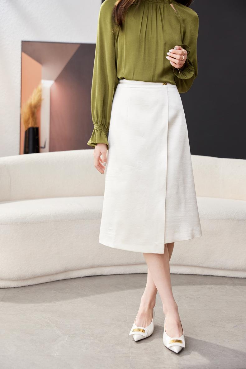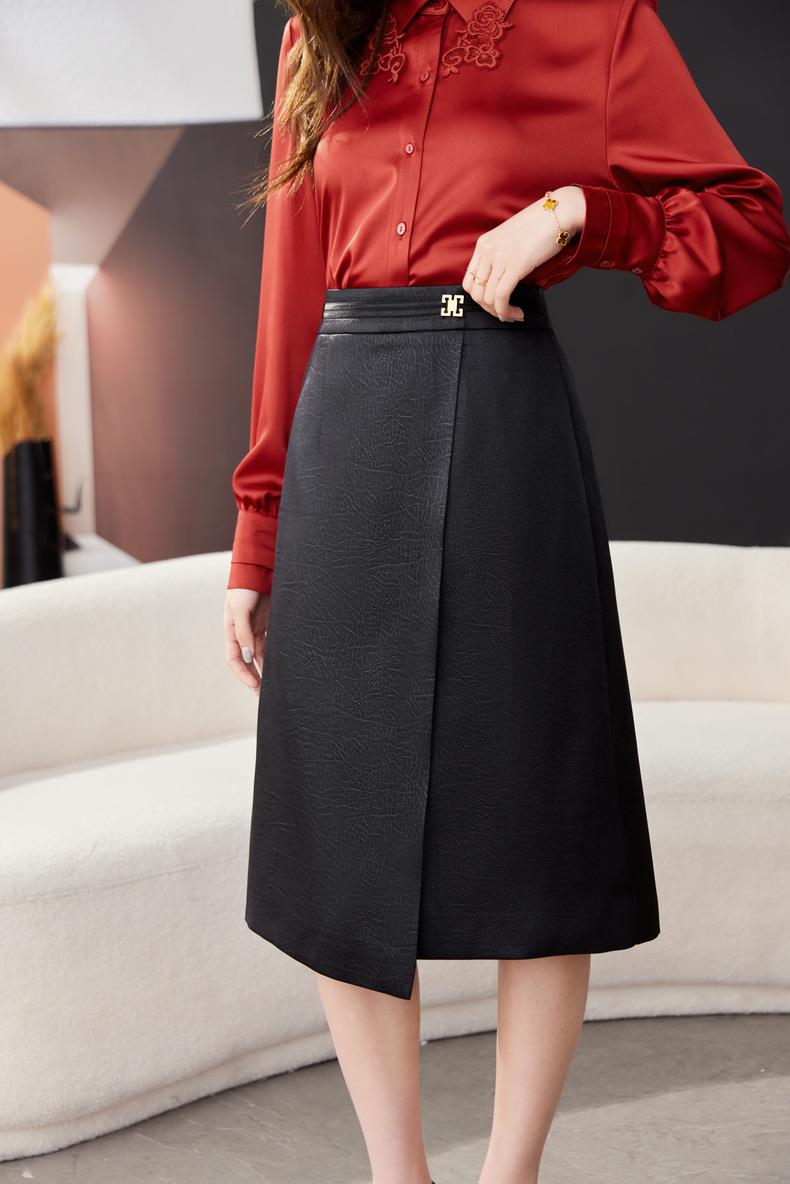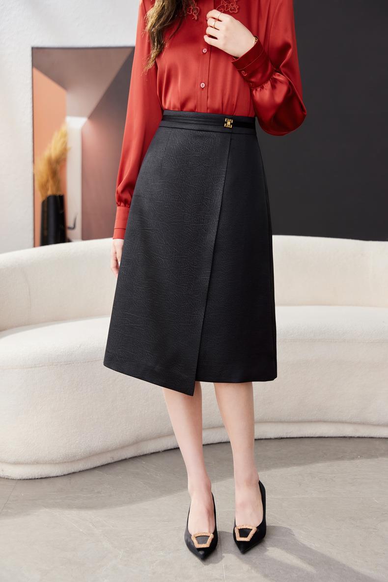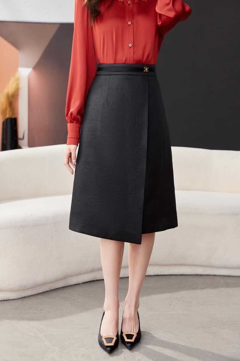 开叉半身裙女2024春装新款高腰中长款包臀裙A字裙1795