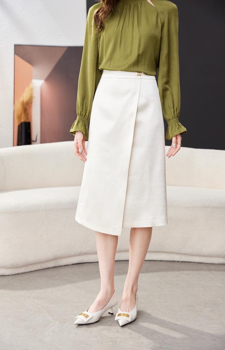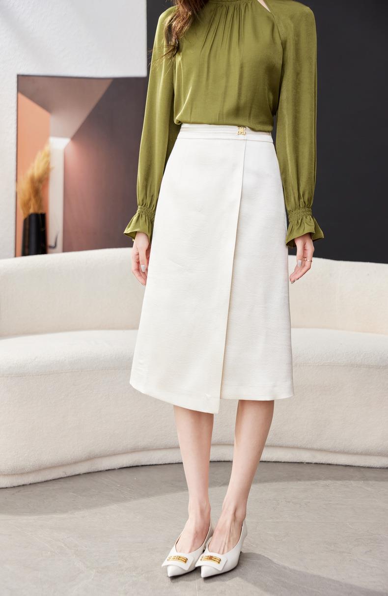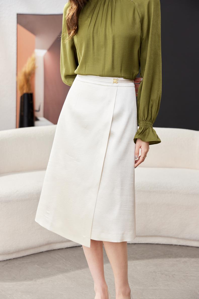开叉半身裙女2024春装新款高腰中长款包臀裙A字裙1795