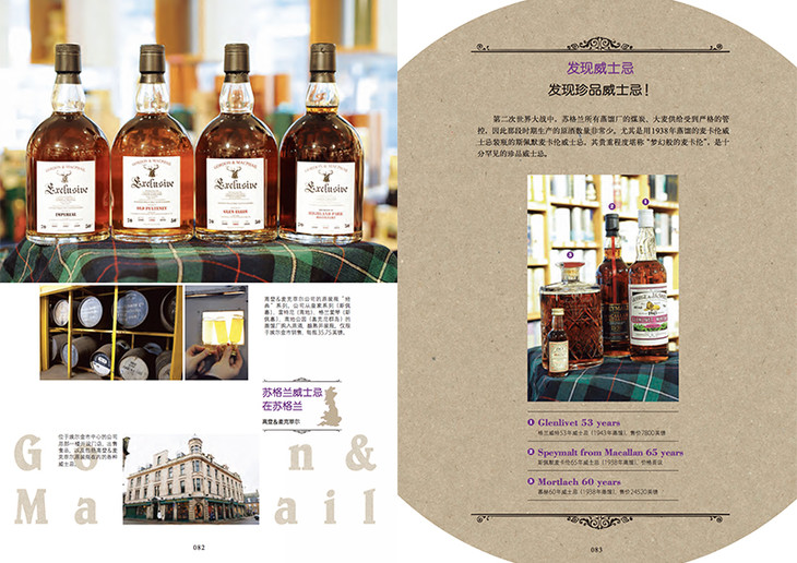 本书含有大量的图片,但区别于单纯的图鉴,文中围绕威士忌文化的相关知识,并有知名业内人士亲身经验和感悟的精彩介绍等,使读者可以零门槛的了解威士忌的基础知识和与之相关的自然、人文等精彩容。