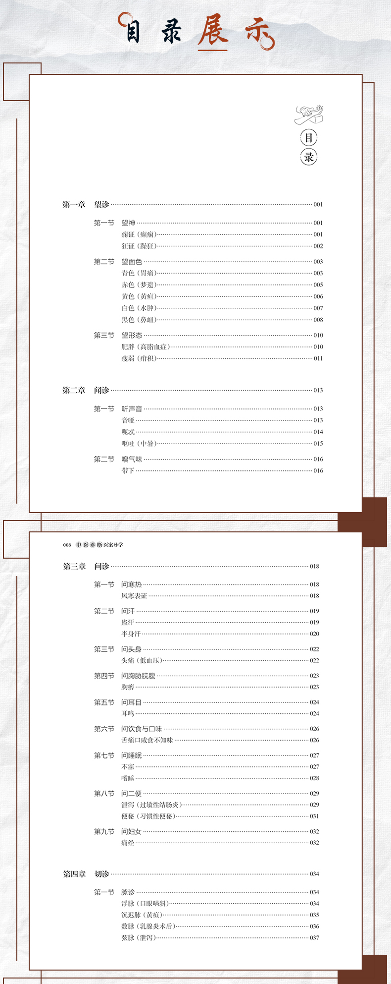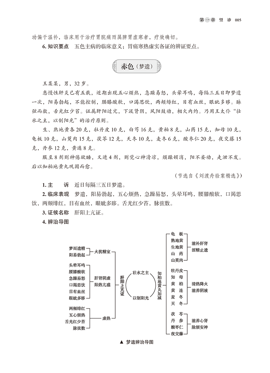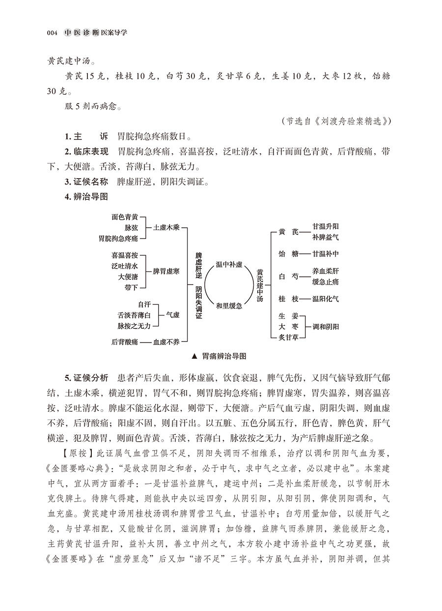 本书以邓铁涛主编的《中医诊断学》全国高等中医药院校规划教材为基础,按照教学大纲要求,结合临床和教学经验进行编写。 全书共分为10章,以教材中望诊、闻诊、问诊、切诊、八纲辨证、气血津液辨证、脏腑辨证、其他辨证(六经辨证、卫气营血辨证、三焦辨证)、临床拓展等各项中医诊断理论技术为抓手,从名医名家诊治精要及编者的临床实践中精选出典型、特色医案加以阐发,每个医案均配有原文、主诉、临床表现、辨治导图、证候分析和知识要点。其中,辨治导图按照“症状—证候—方药”的临床思路整合,条理清晰,简明易懂,有助于帮助学生系统掌握中医诊断学的核心内涵,为临床打下坚实的基础。
