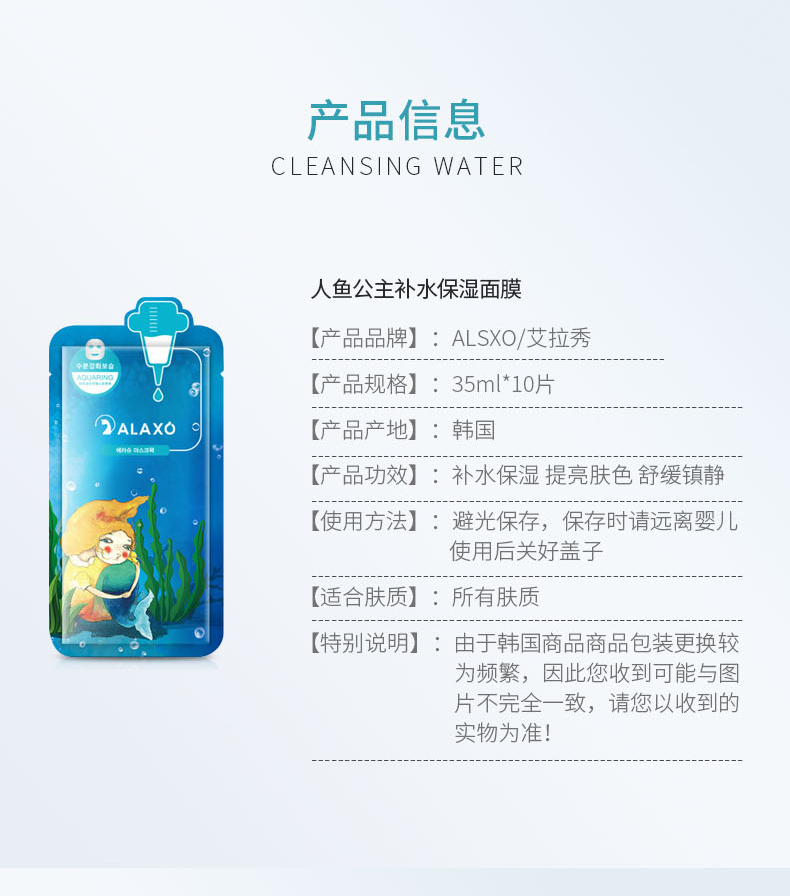 HG 艾拉秀人鱼公主蓝色补水面膜 10片/盒