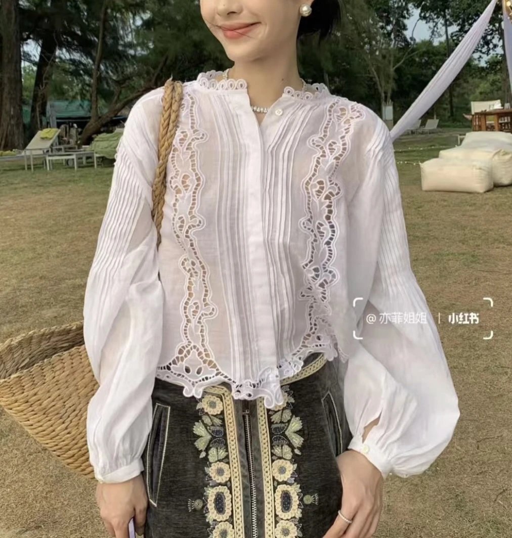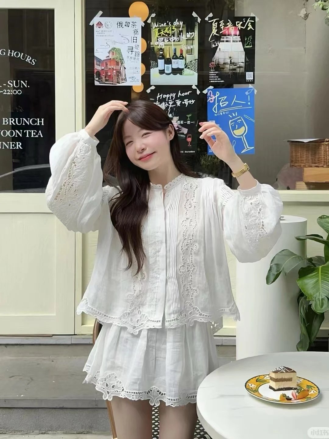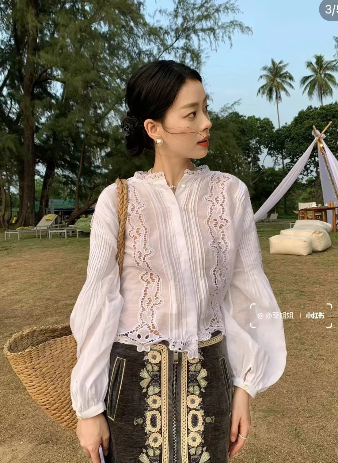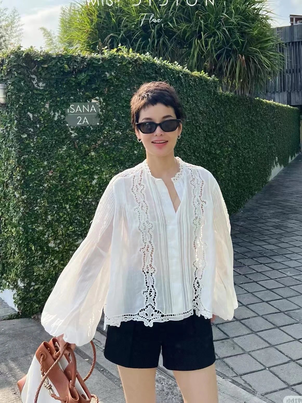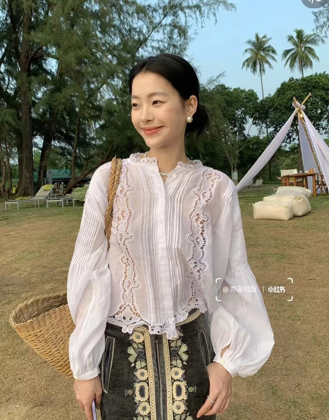 重磅渠道!is镂空苎麻衬衣 法式优雅 立领小短款