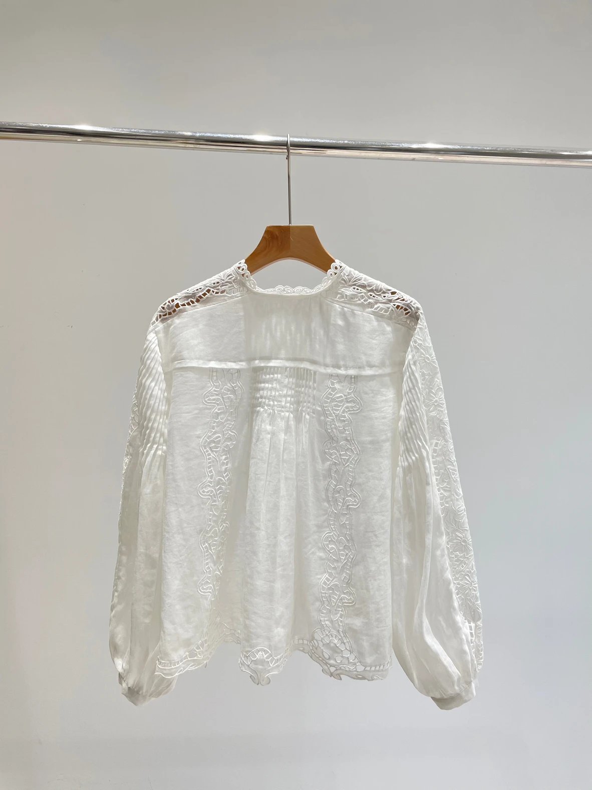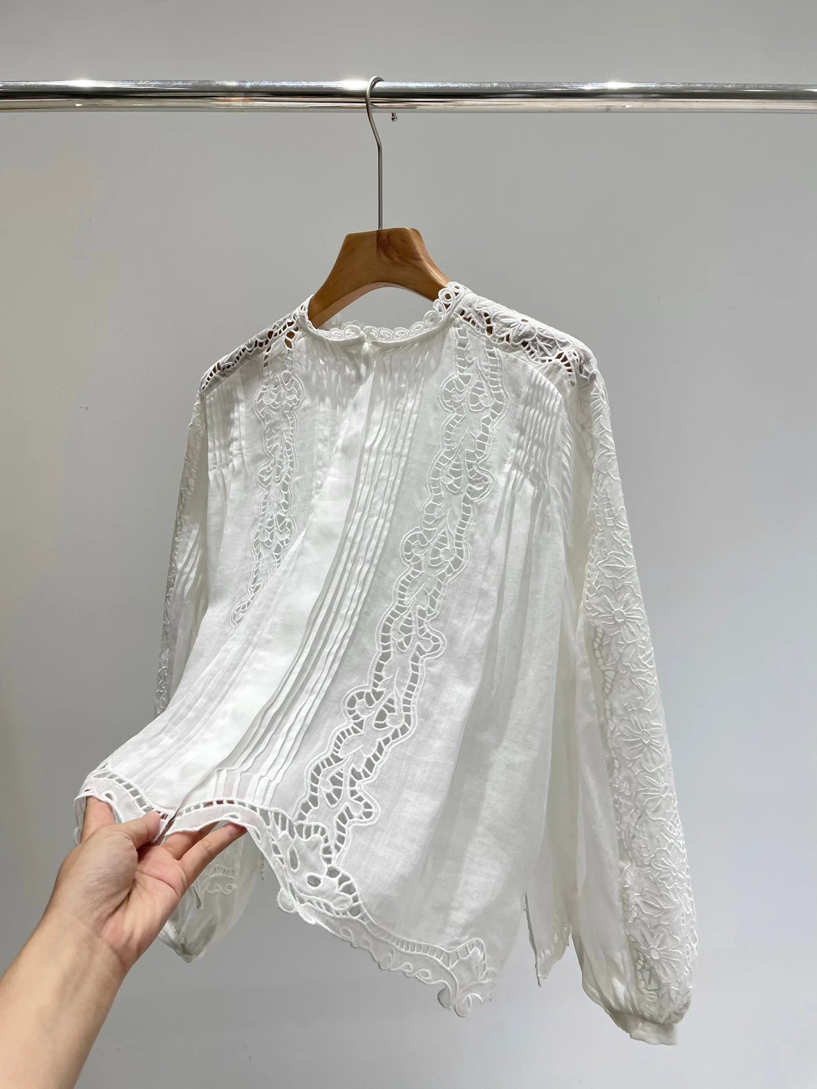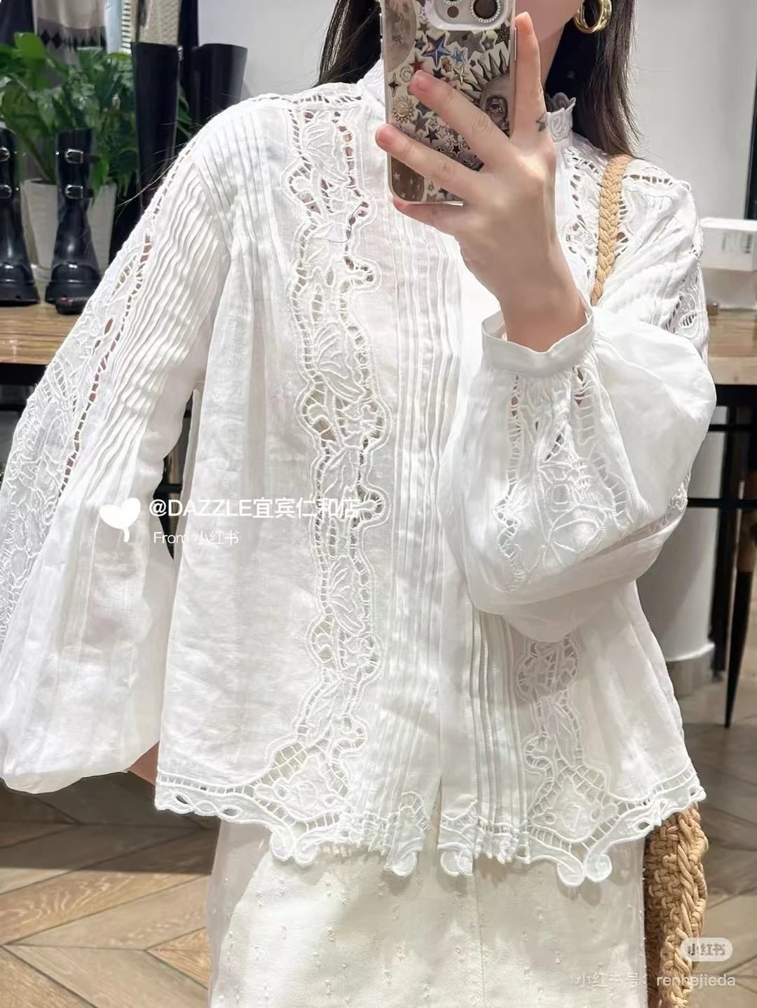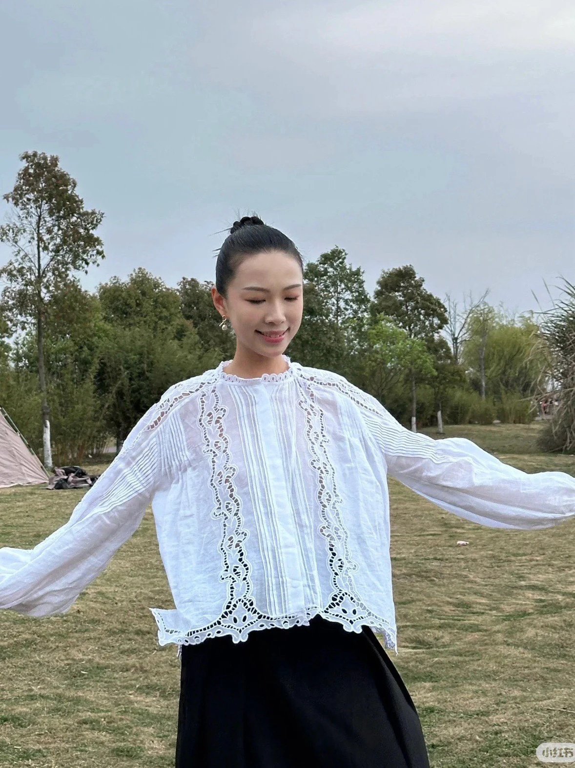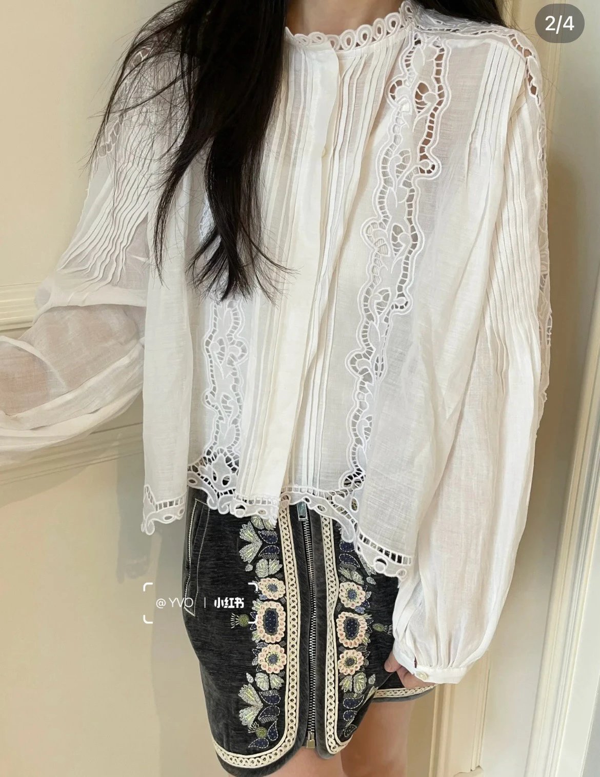 重磅渠道!is镂空苎麻衬衣 法式优雅 立领小短款