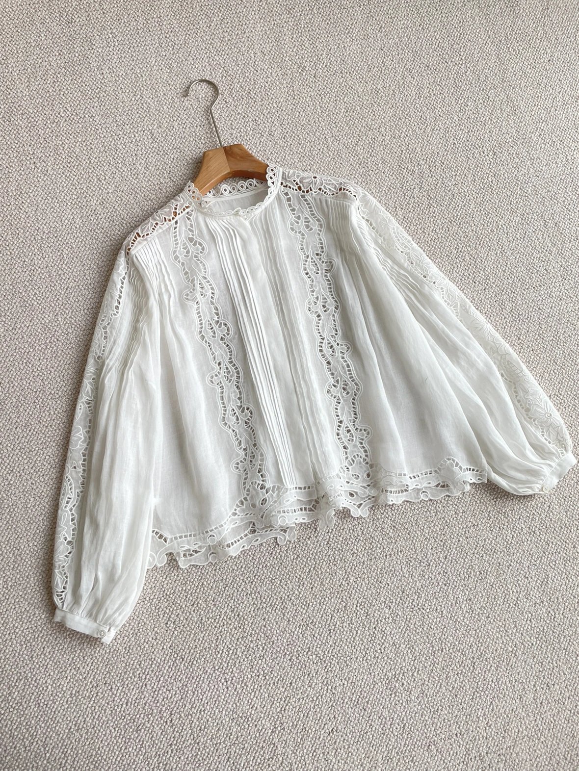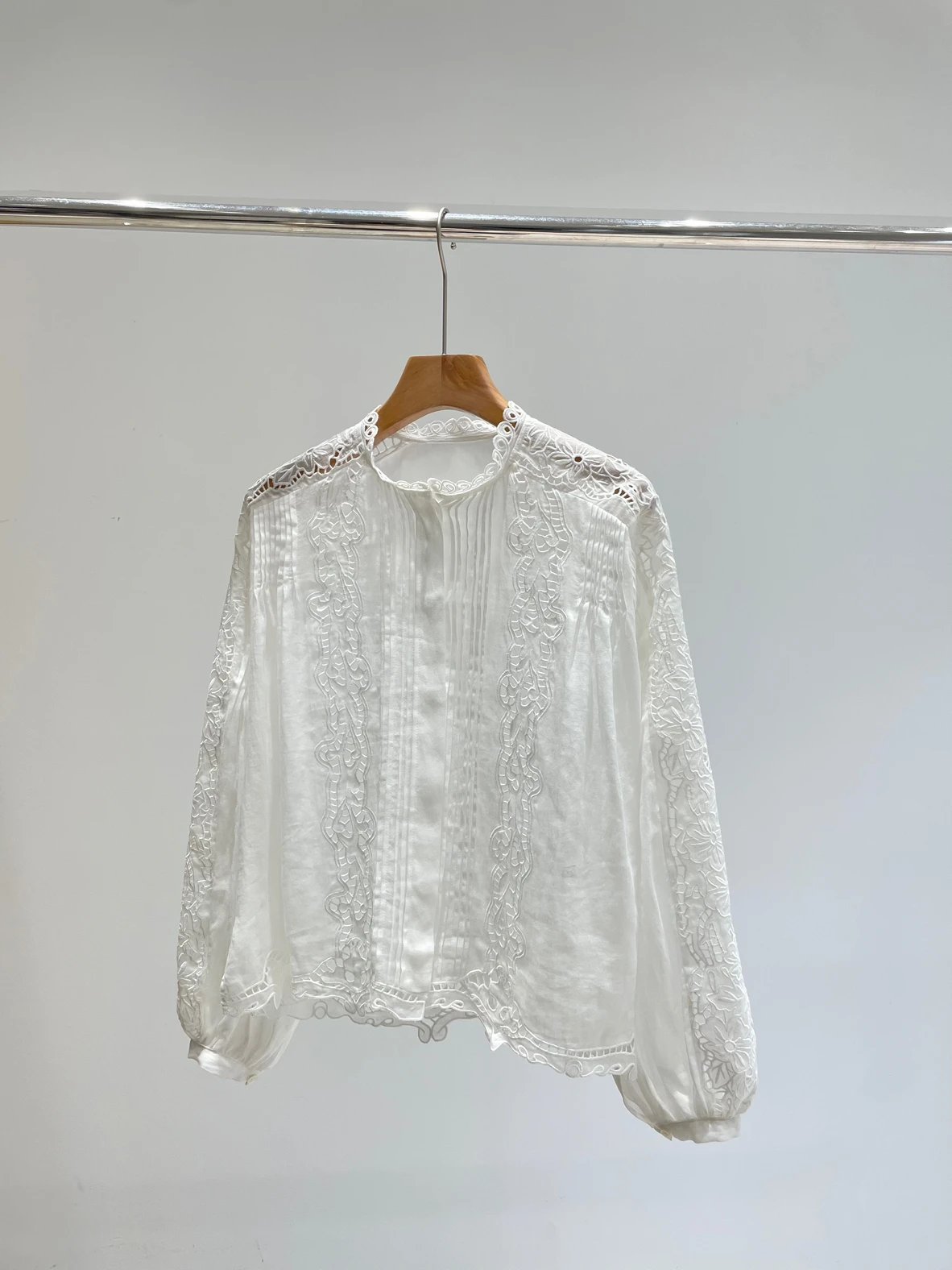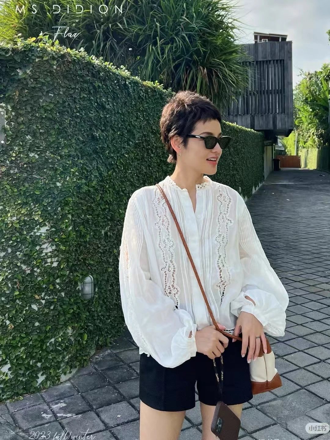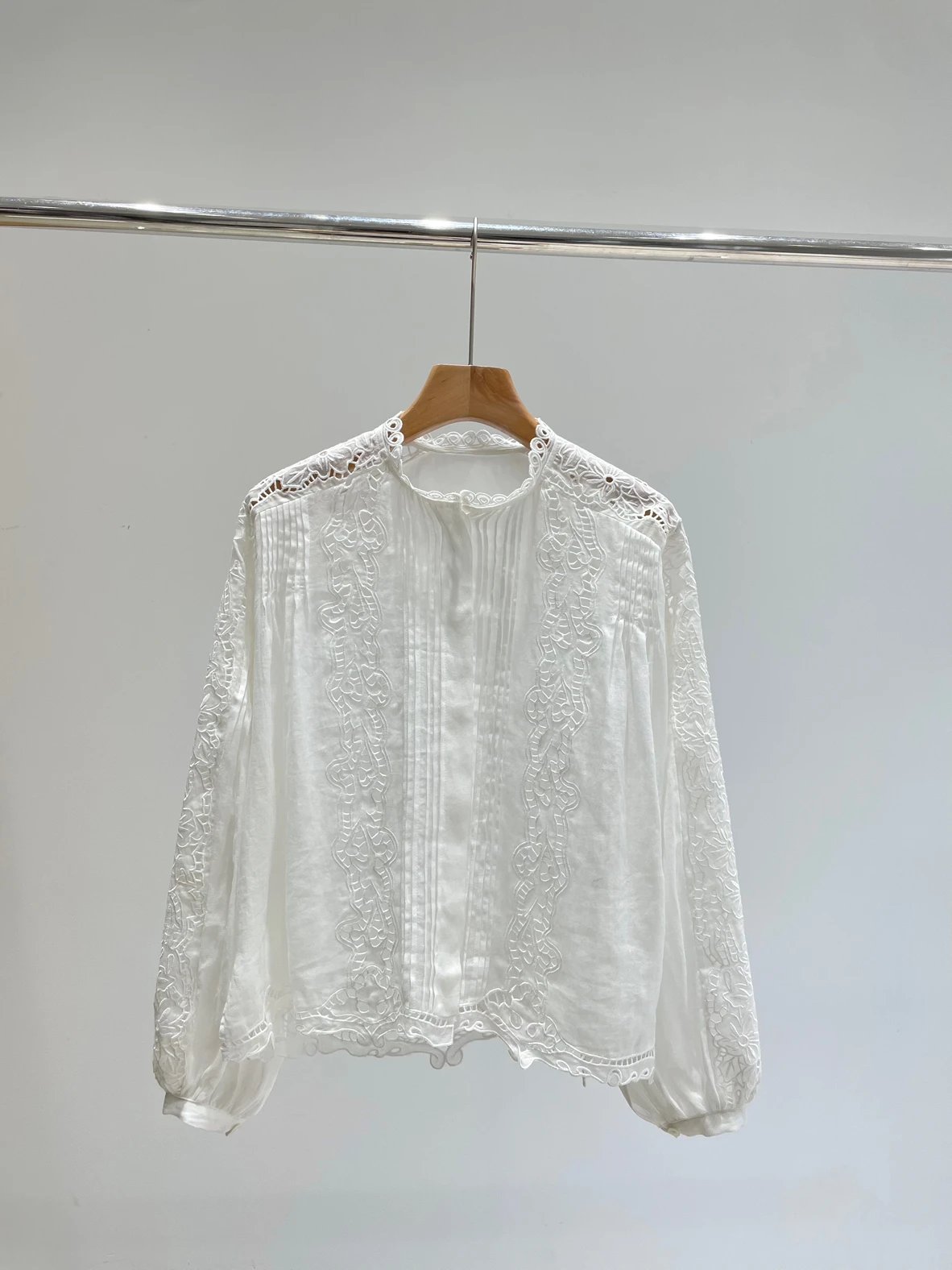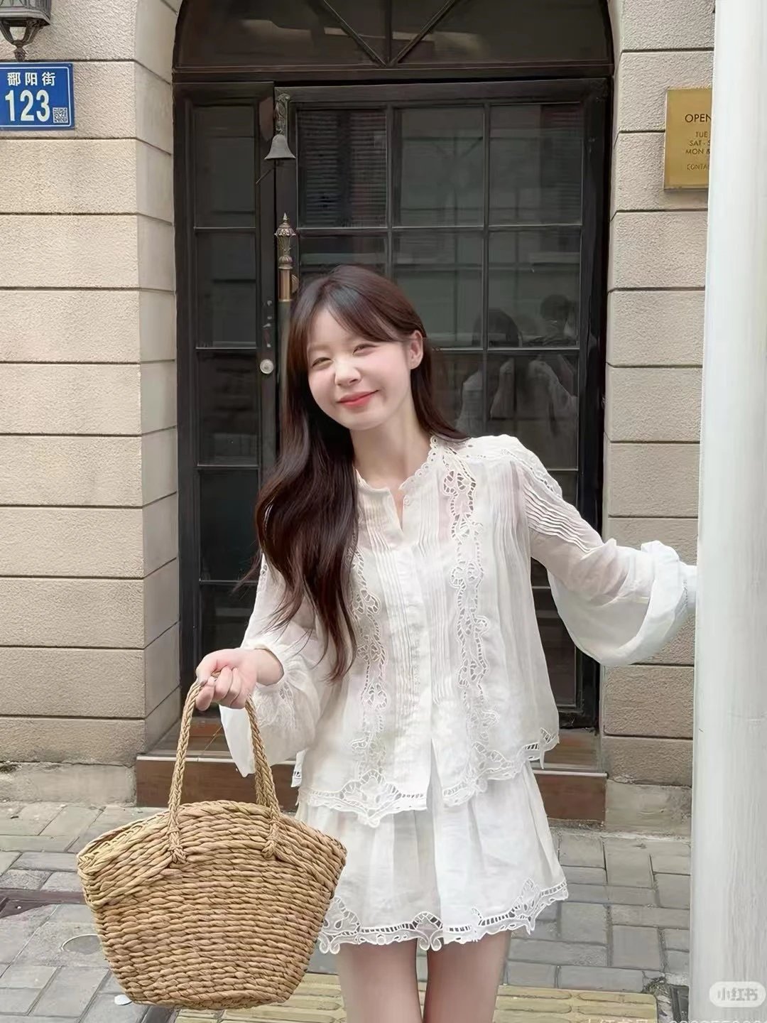 重磅渠道!is镂空苎麻衬衣 法式优雅 立领小短款