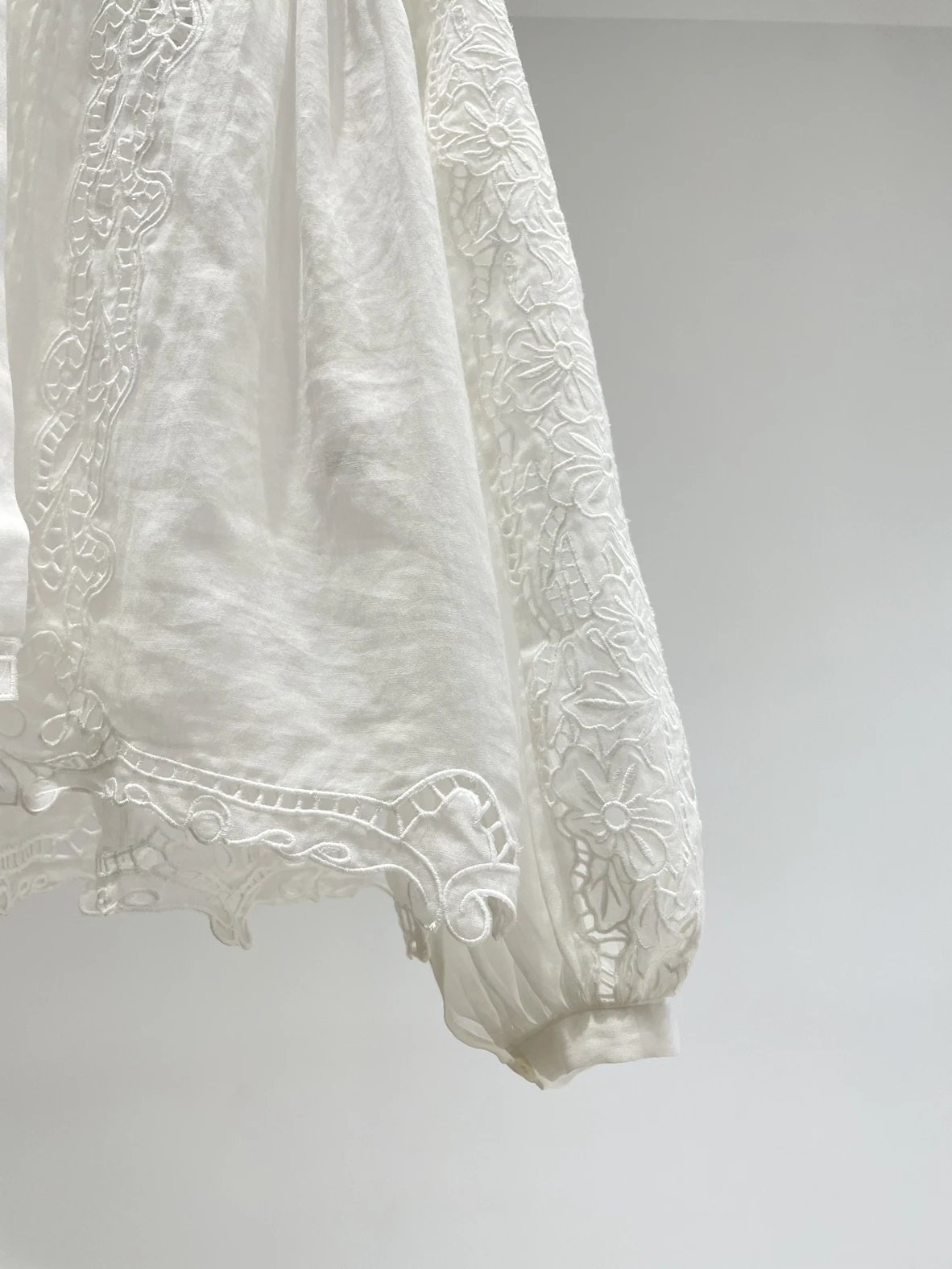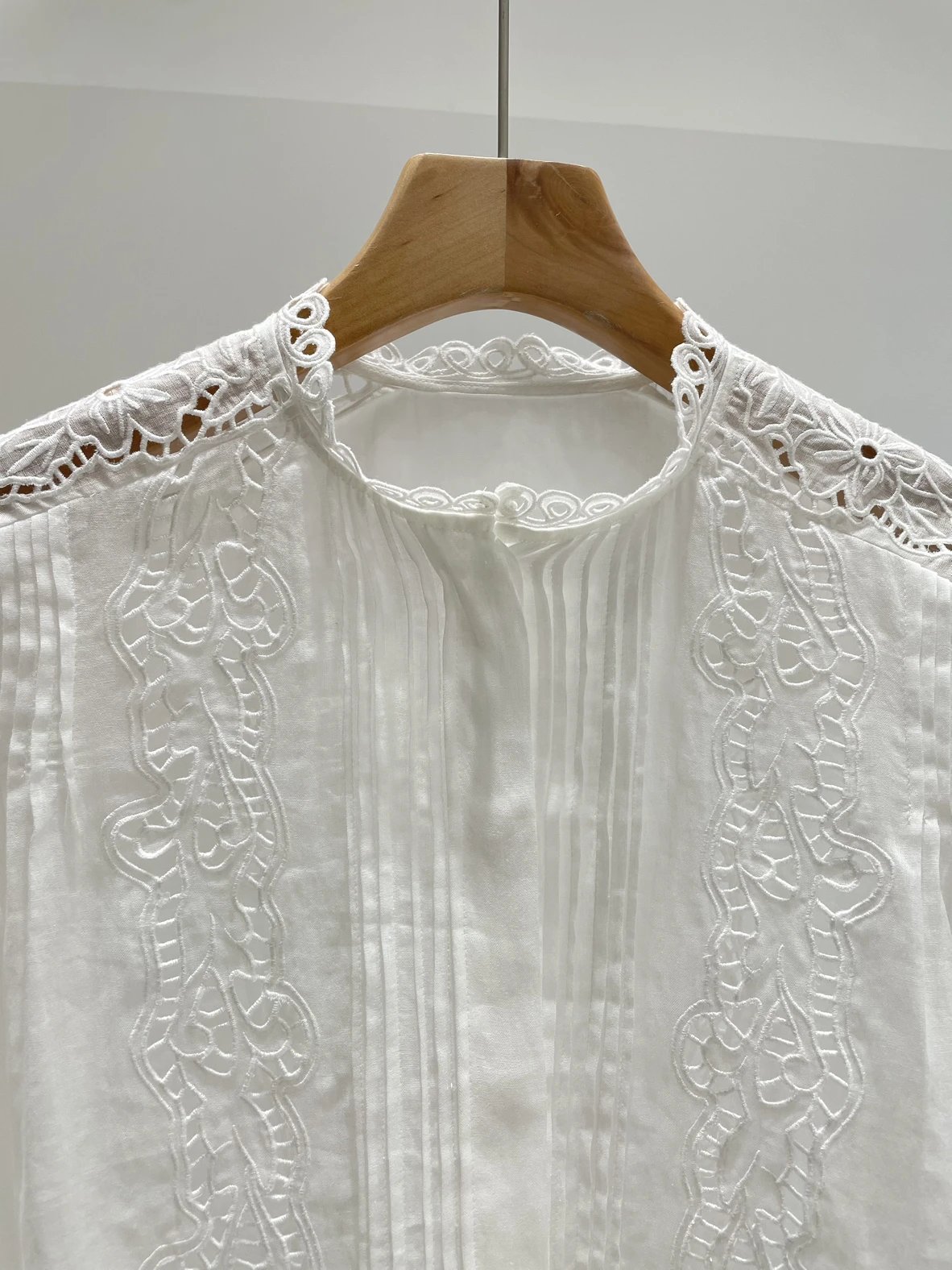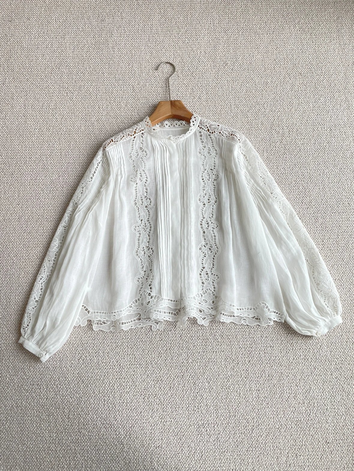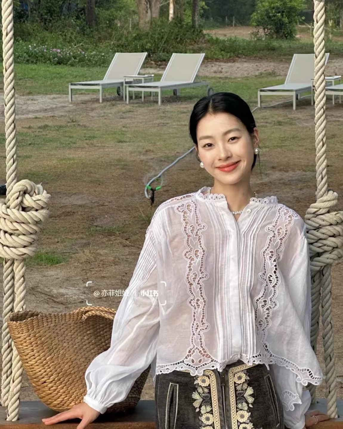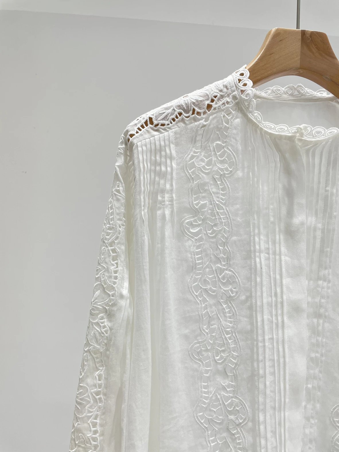 重磅渠道!is镂空苎麻衬衣 法式优雅 立领小短款