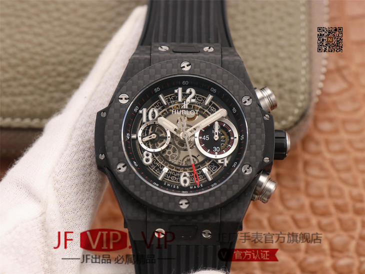 宇舶BIG BANG系列411.NM.1170.RX腕表,7750机芯机械改装HUB1241Unico 表径45.5毫米 振频28800 动力,男士腕表,硅胶表带,自动机械机