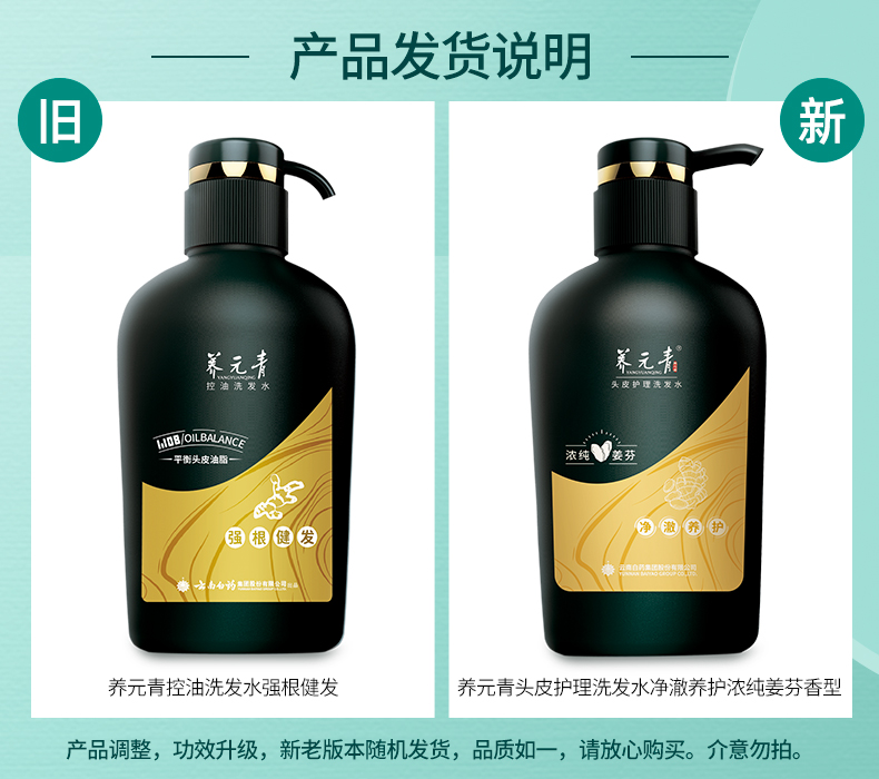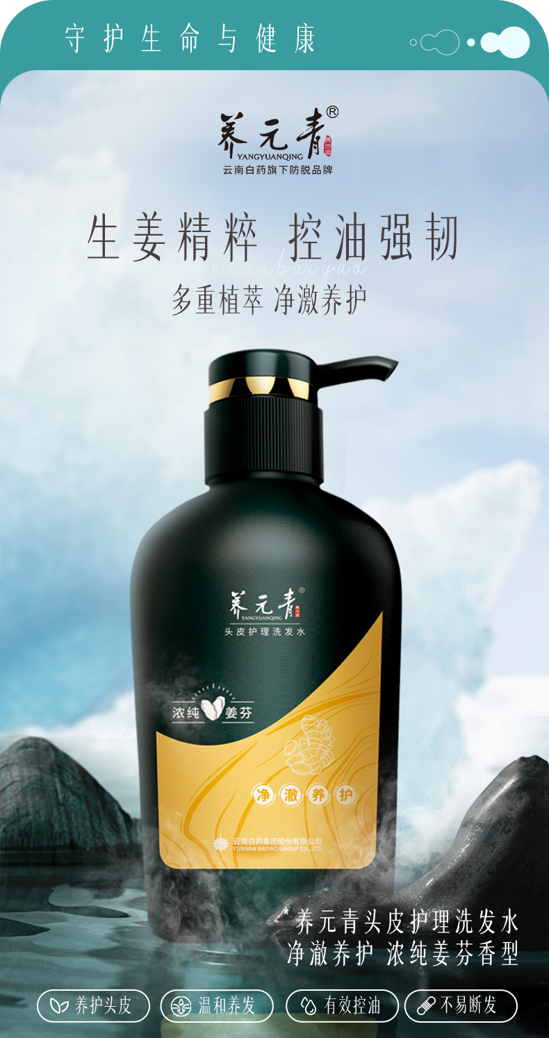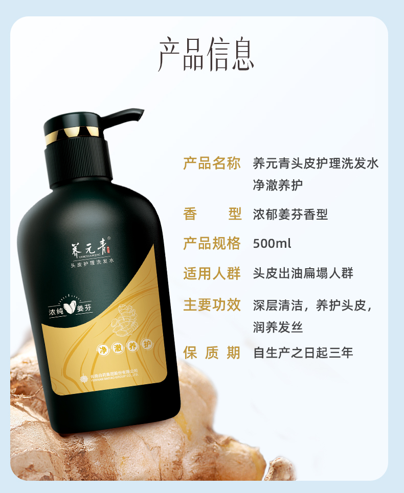 【白药精选】云南白药养元青浓纯姜芬洗发露强根健发500ml大瓶装生姜洗发水无硅油温和养护