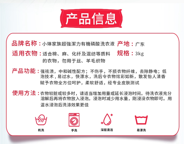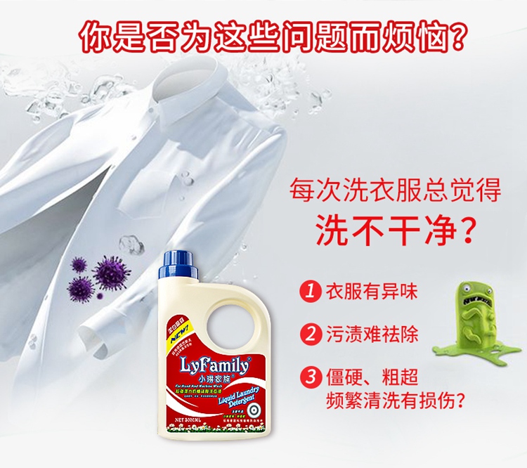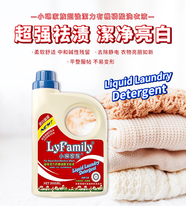 【小琳家族】超强洁力有机磷酸洗衣液 3kg/瓶 厂家直发