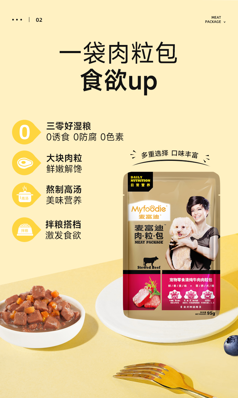 麦富迪肉粒包狗罐头拌饭狗零食幼犬湿粮泰迪比熊小型犬宠物95g*12