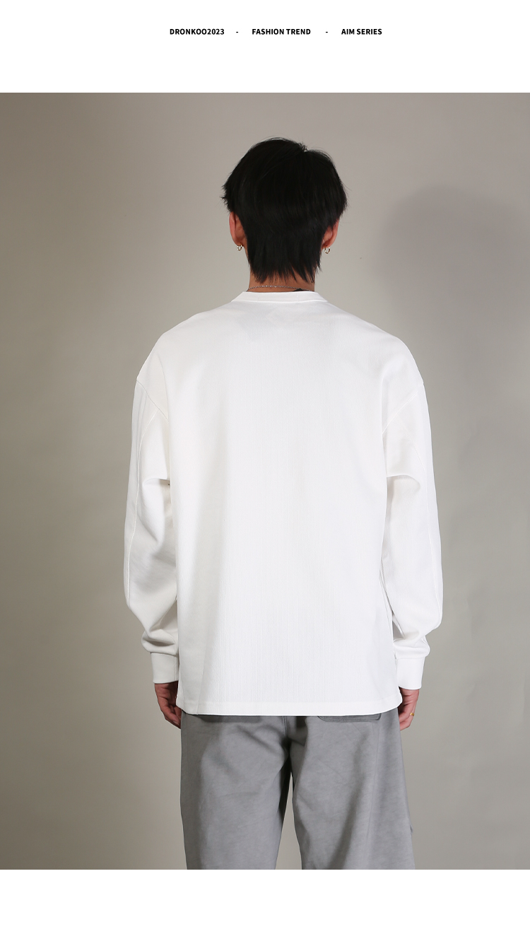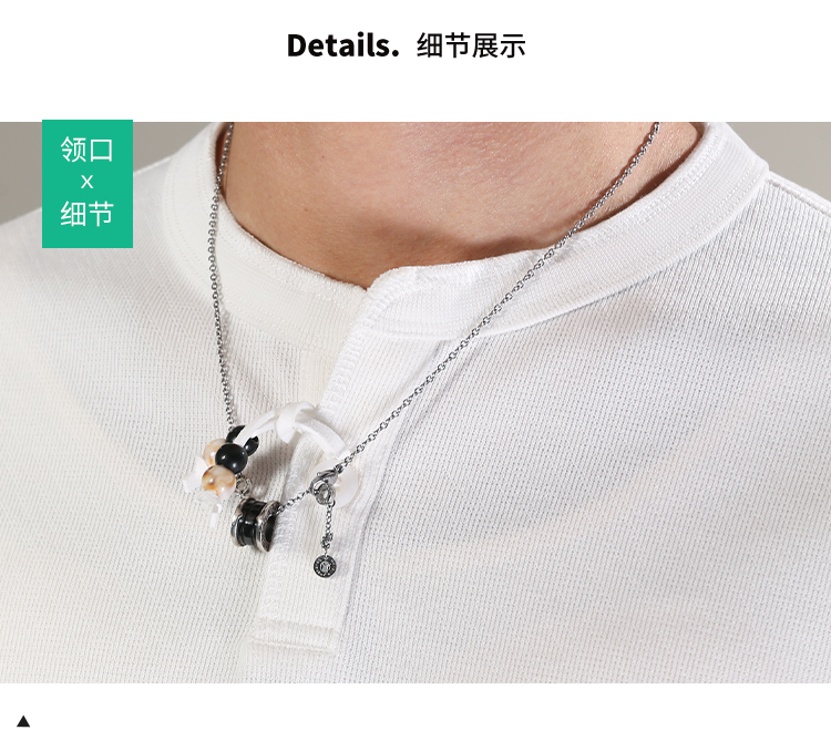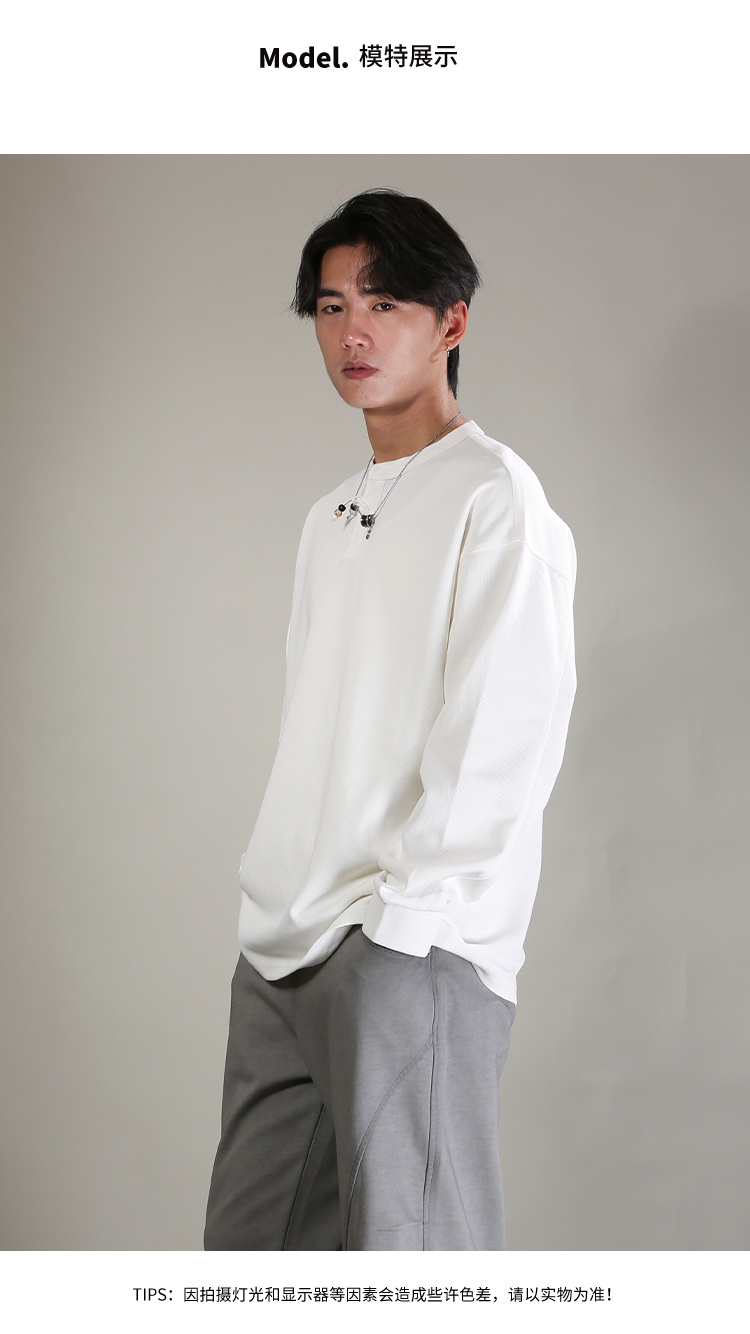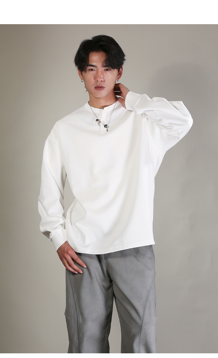 DRONKOO 2026 圆亨利领开扣钉珠装饰微阔长袖中厚T恤