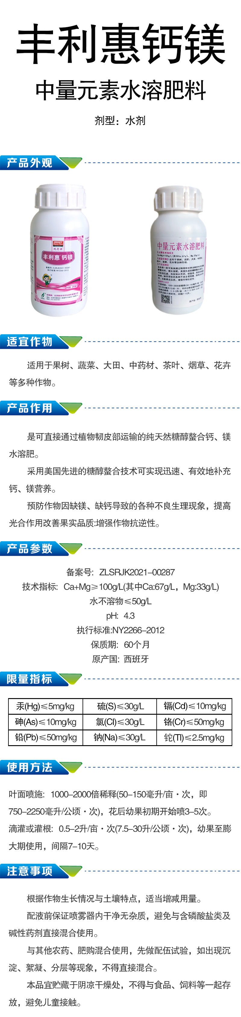 丰利惠 钙镁叶面肥快速有效的补充钙、镁元素