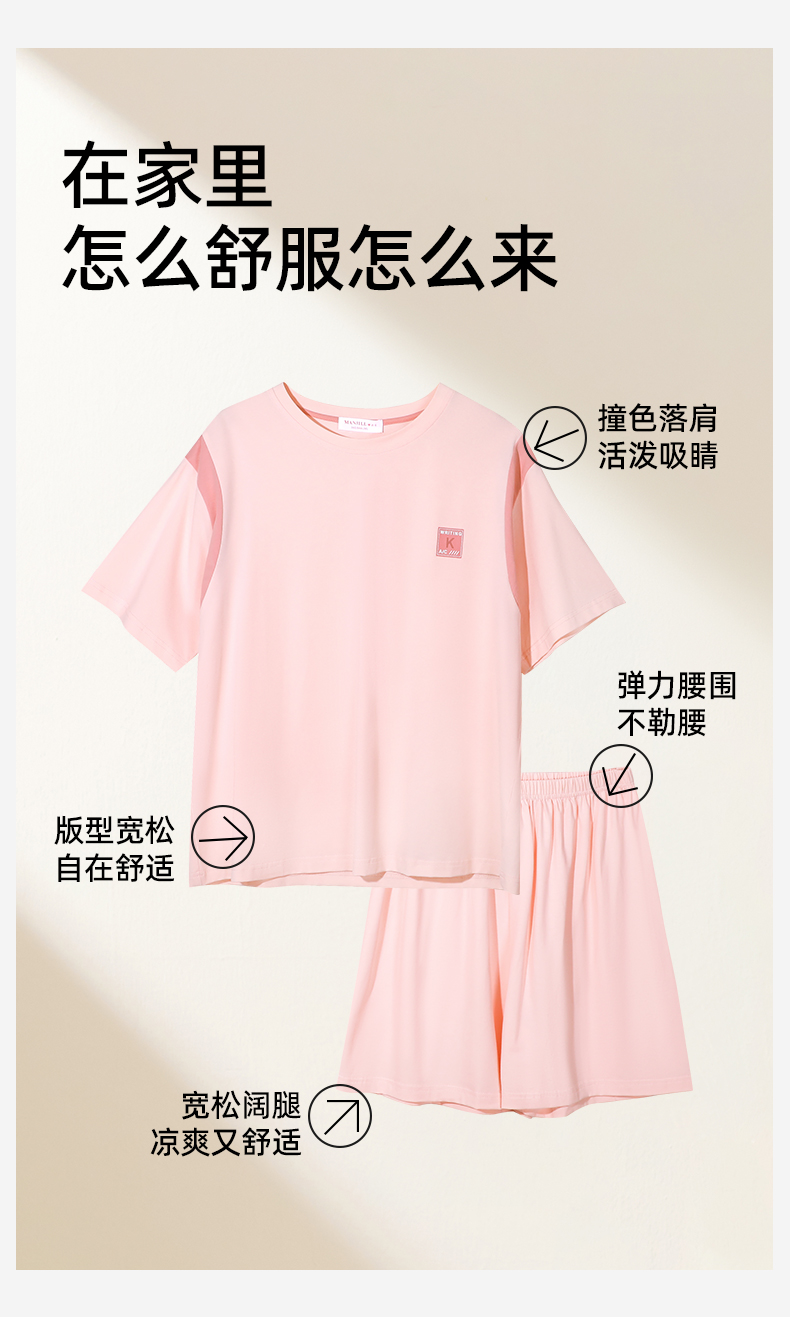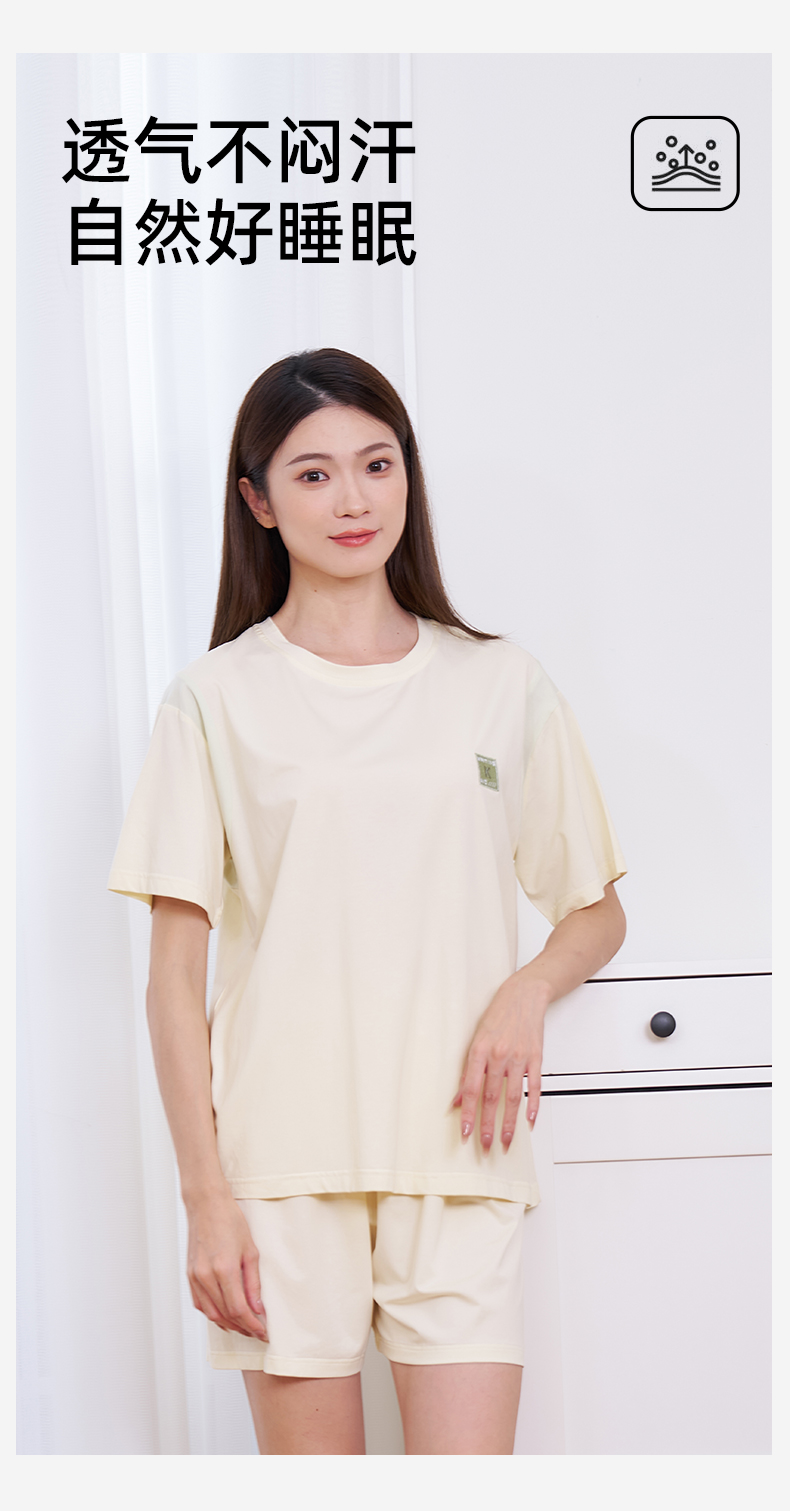 【商场同款】熳洁儿 95%棉女士家居服圆领套头短袖短裤套装夏季25203211
