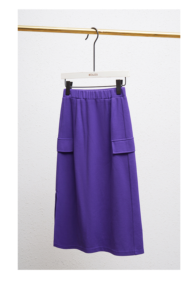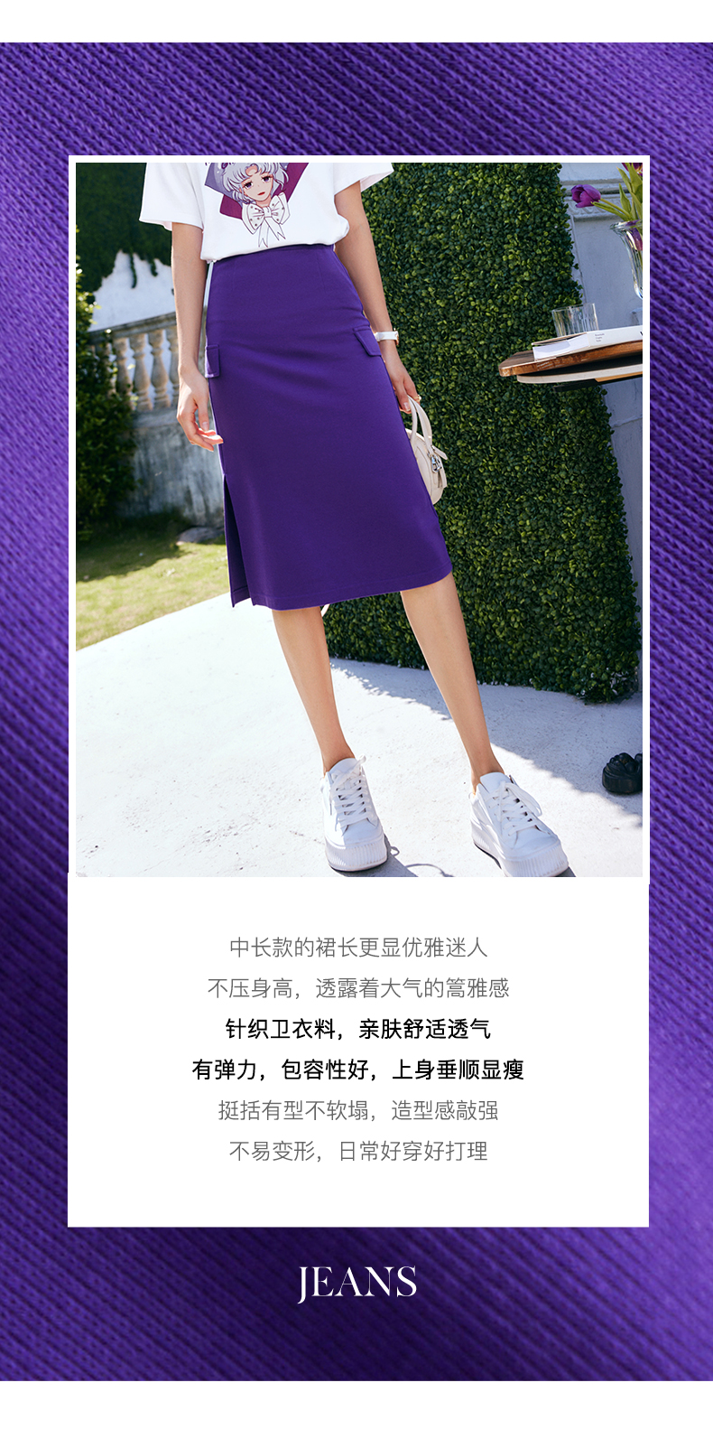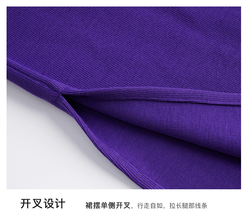 OLrain法式高级穿搭紫色针织半身裙女夏季2022新款高腰气质开叉裙
