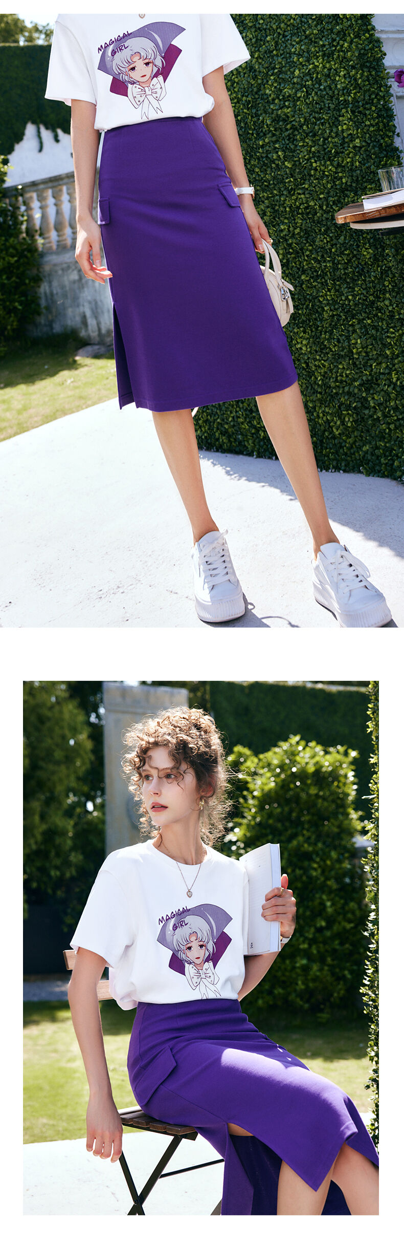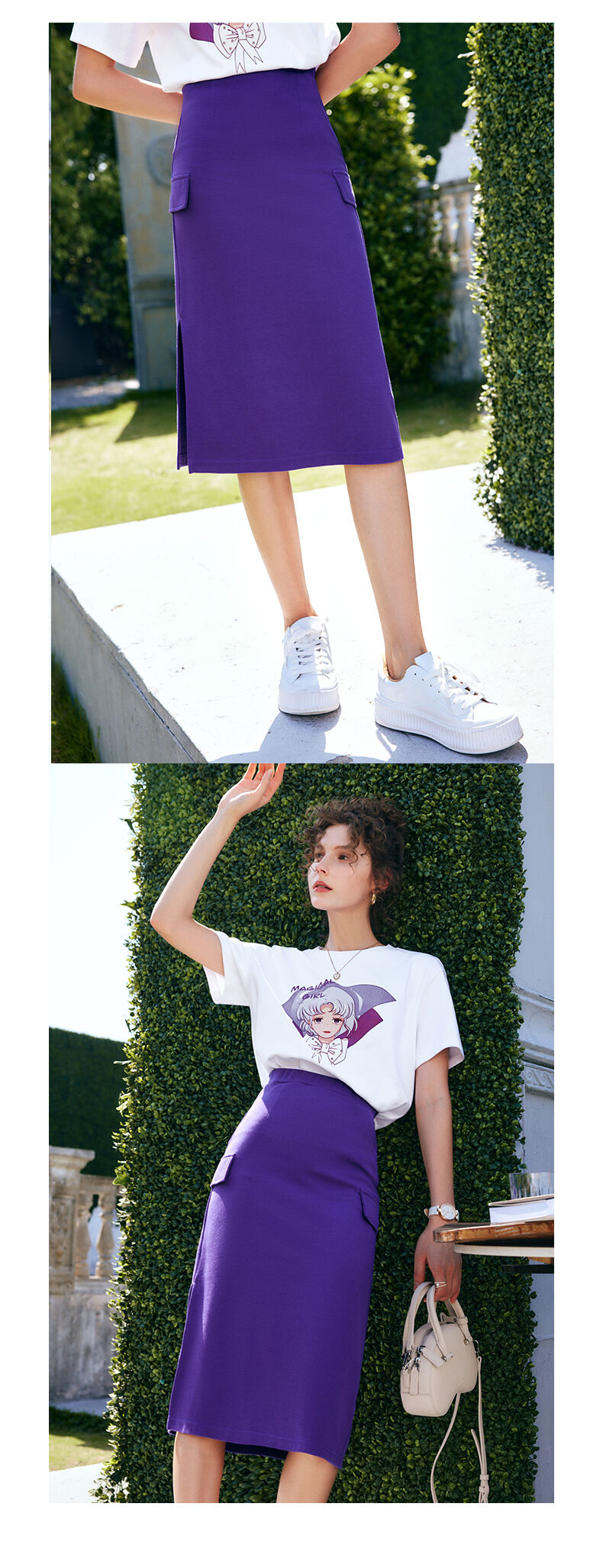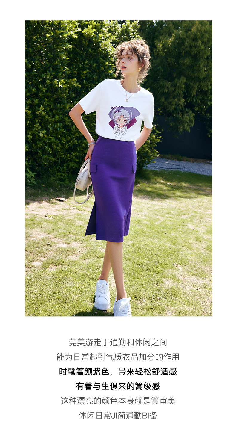 OLrain法式高级穿搭紫色针织半身裙女夏季2022新款高腰气质开叉裙
