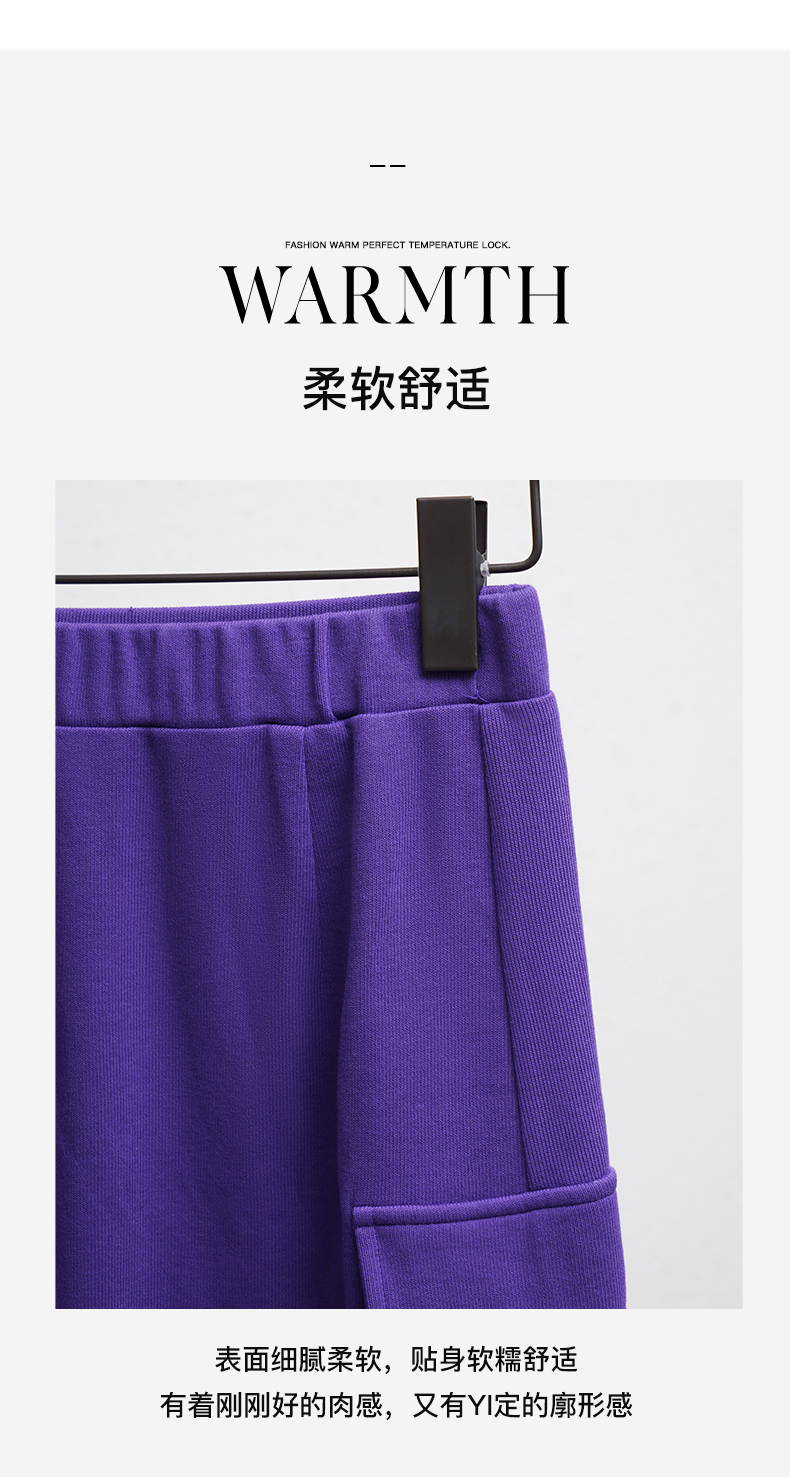 OLrain欧芮儿灰色修身上衣紫色慵懒风裤子女夏季2025新款两件套装