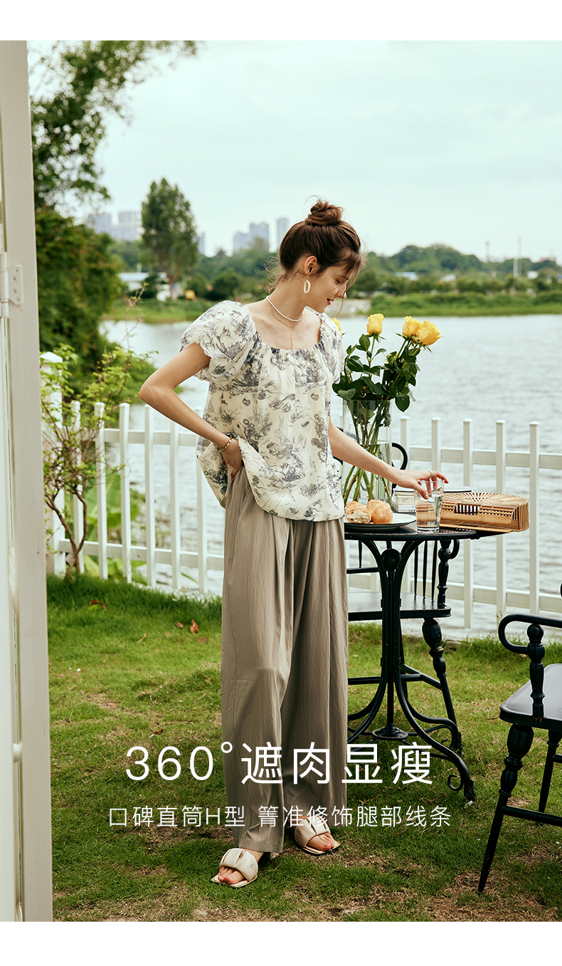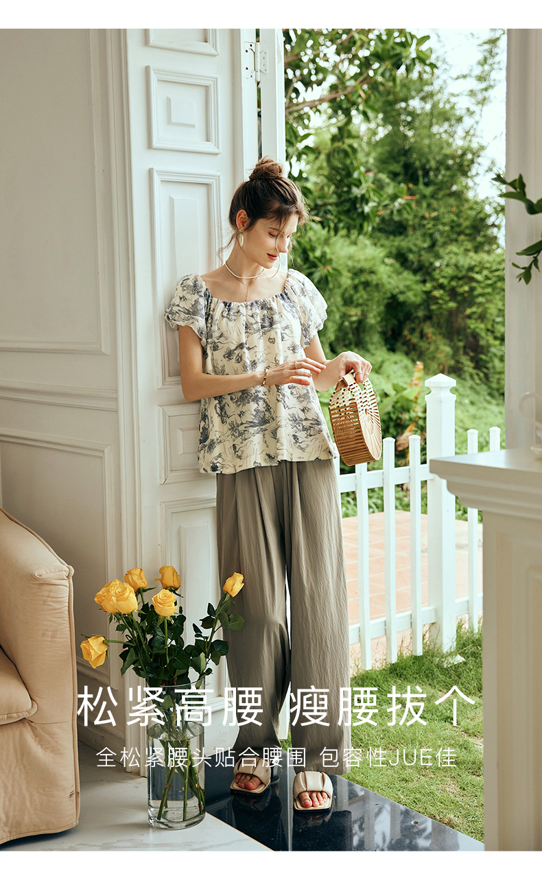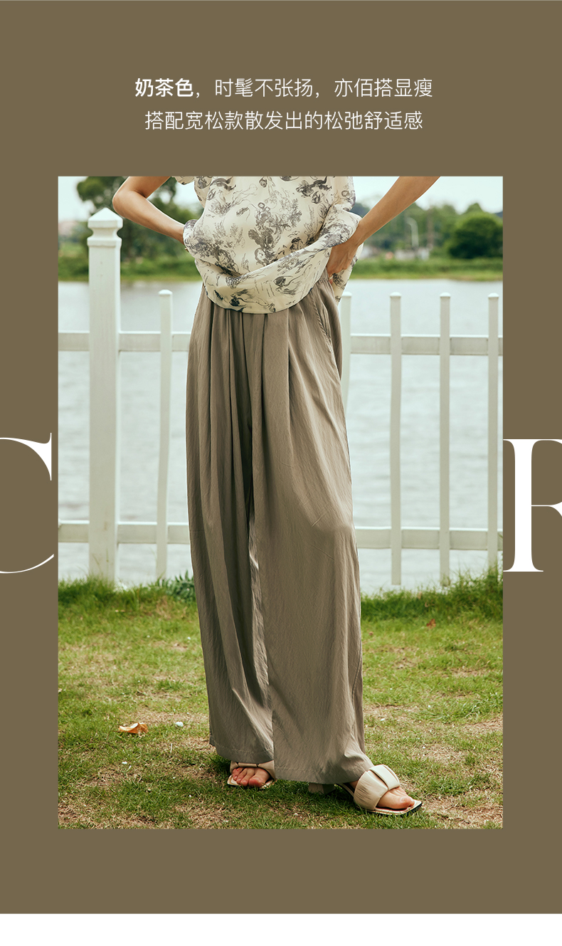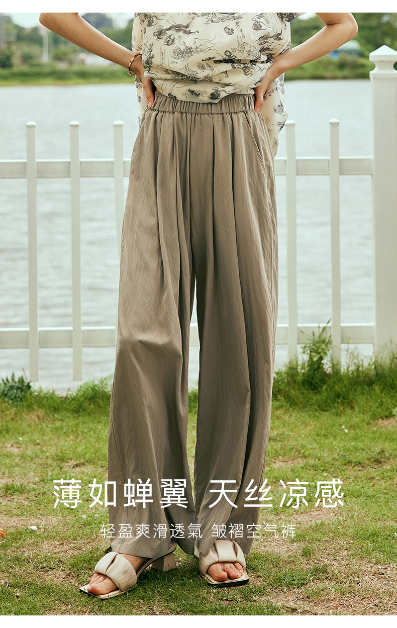 OLrain欧芮儿法式天丝休闲裤女夏季2023新款高腰宽松阔腿垂感长裤