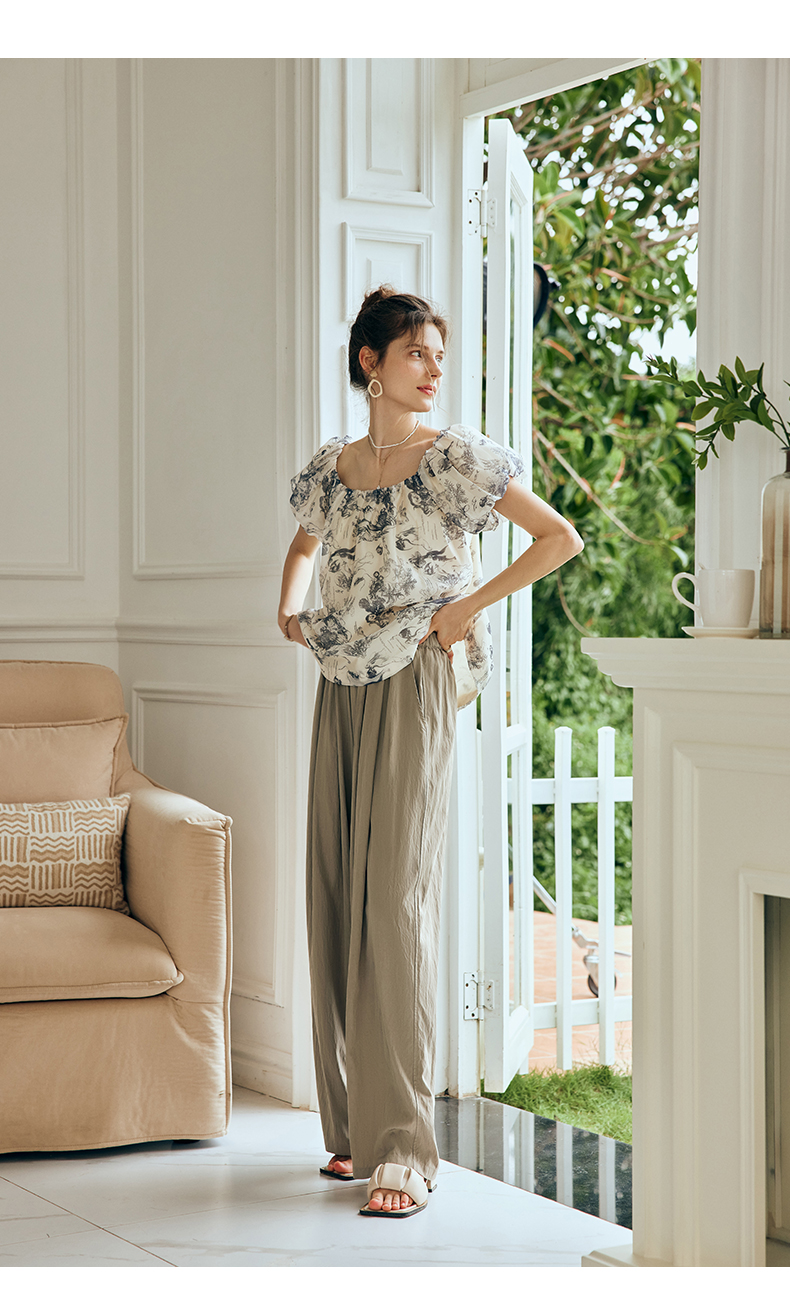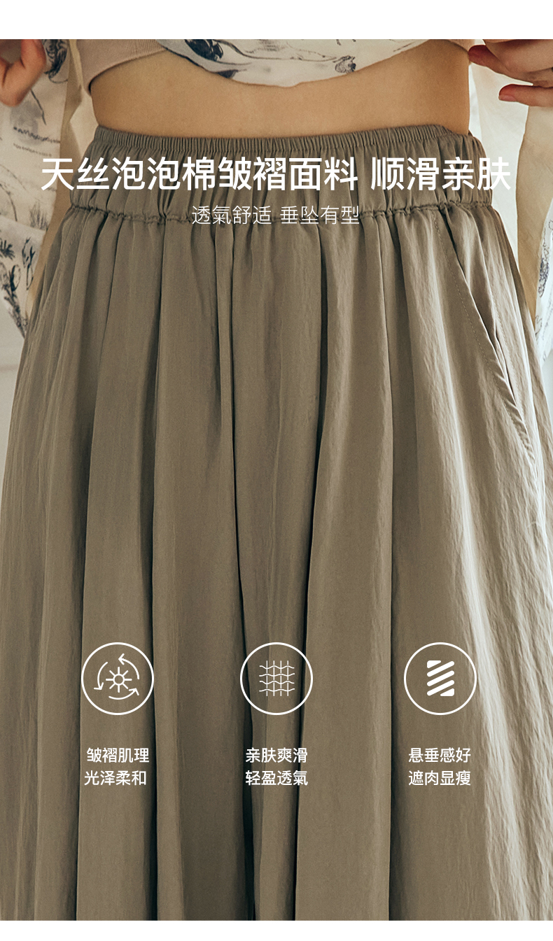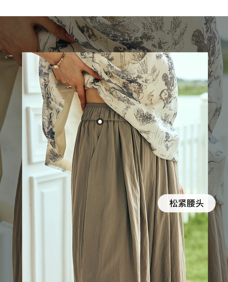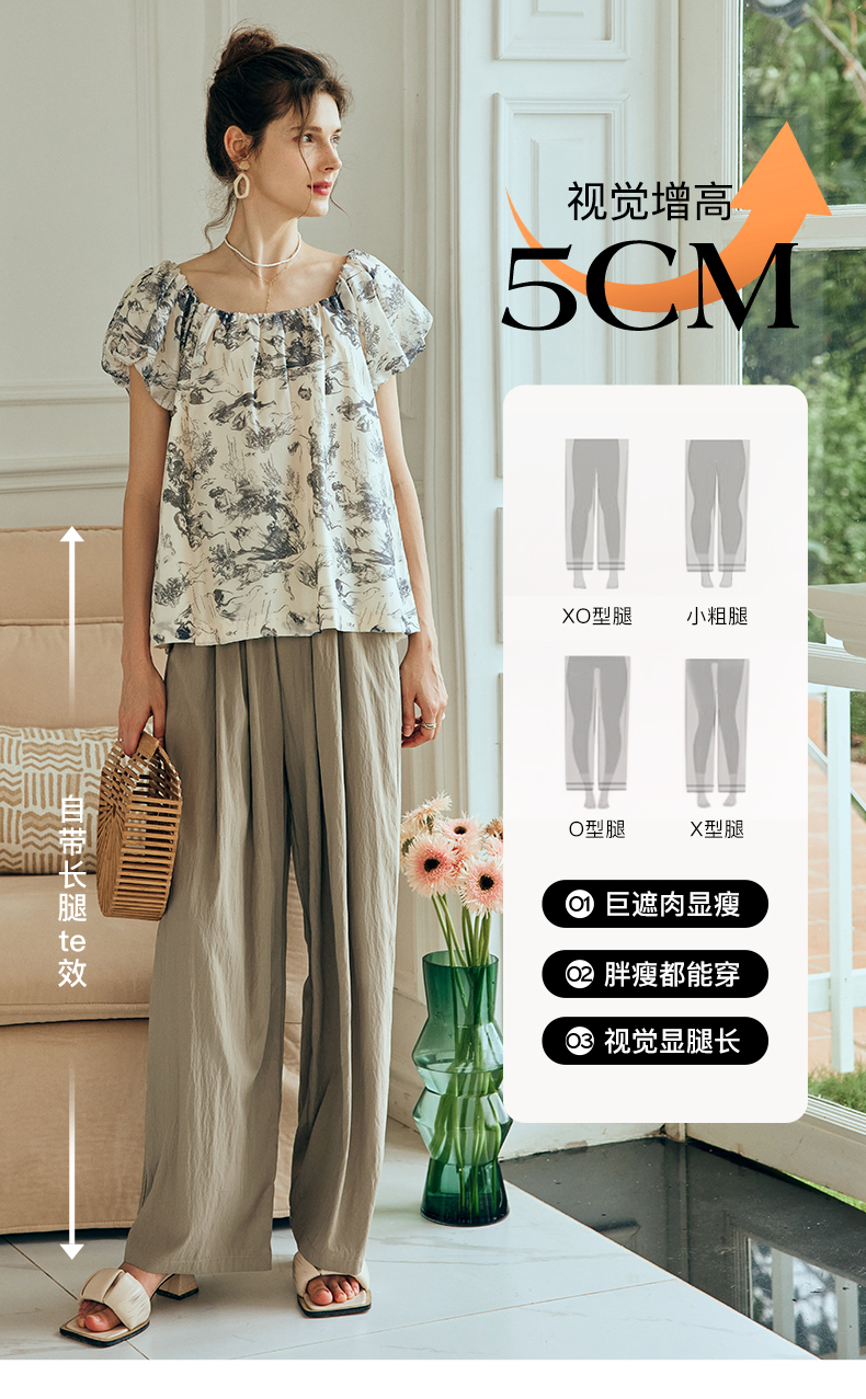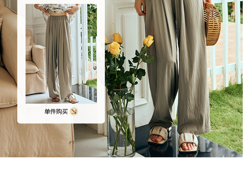 OLrain欧芮儿法式天丝休闲裤女夏季2023新款高腰宽松阔腿垂感长裤